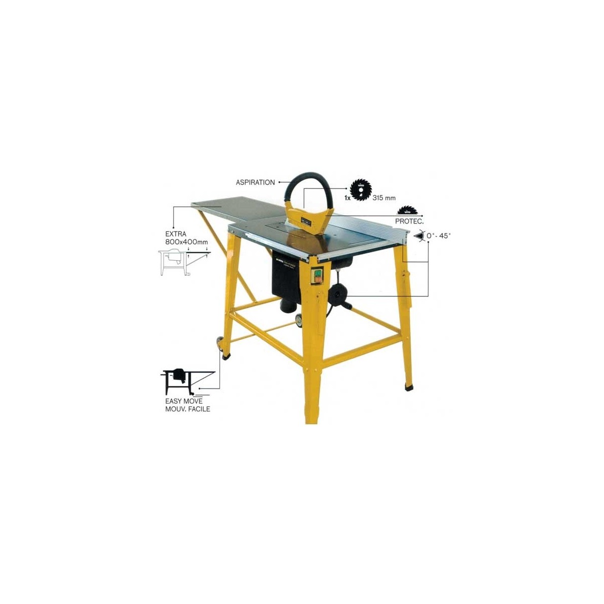Scie circulaire de table 2000 W Disque 315 mm inclinaison 45° Professionnelle VITO