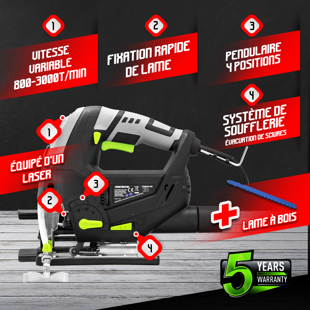 Scie sauteuse pendulaire 800W - Laser - Coffret de rangement - Constructor