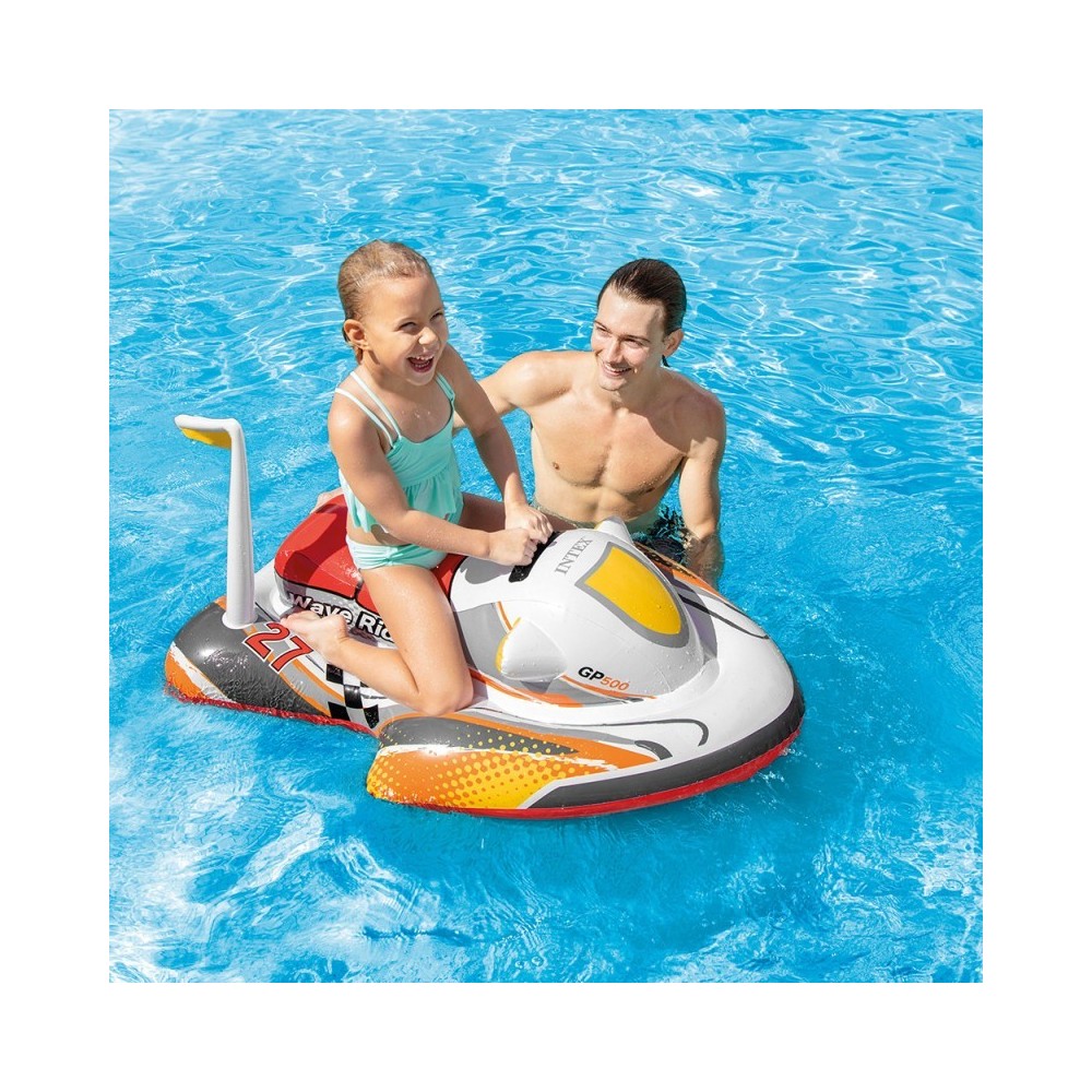 Ce scooter gonflable 1 place à chevaucher sera un super amusement pour les enfants ! Fabriqué en vinyle robuste de haute qualité, il possède une poignée et une base large pour une assise stable et des heures d'amusement.