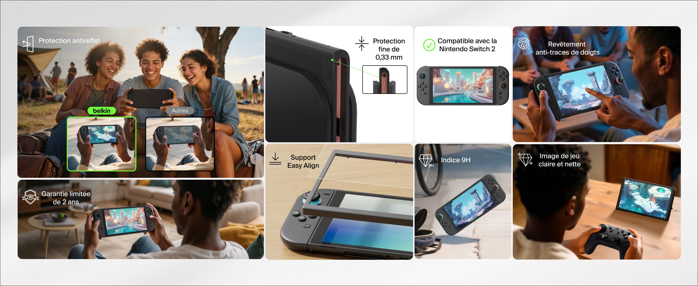 Améliorez votre expérience de jeu avec notre protection d'écran pour Switch 2 et son revêtement antireflet. Cette protection en verre trempé a été conçue pour vous offrir un accessoire durable doté d'une clarté sans pareil. Elle vous permet de protéger votre écran des rayures et des taches tout en préservant la qualité d'image. Elle a été pensée pour préserver la fonction tactile de votre console de jeux et pour protéger votre écran contre les impacts, rayures, cassures, taches, traces de doigts, etc. Profitez de ses avantages en un clin d'oeil grâce à son processus d'installation facile.