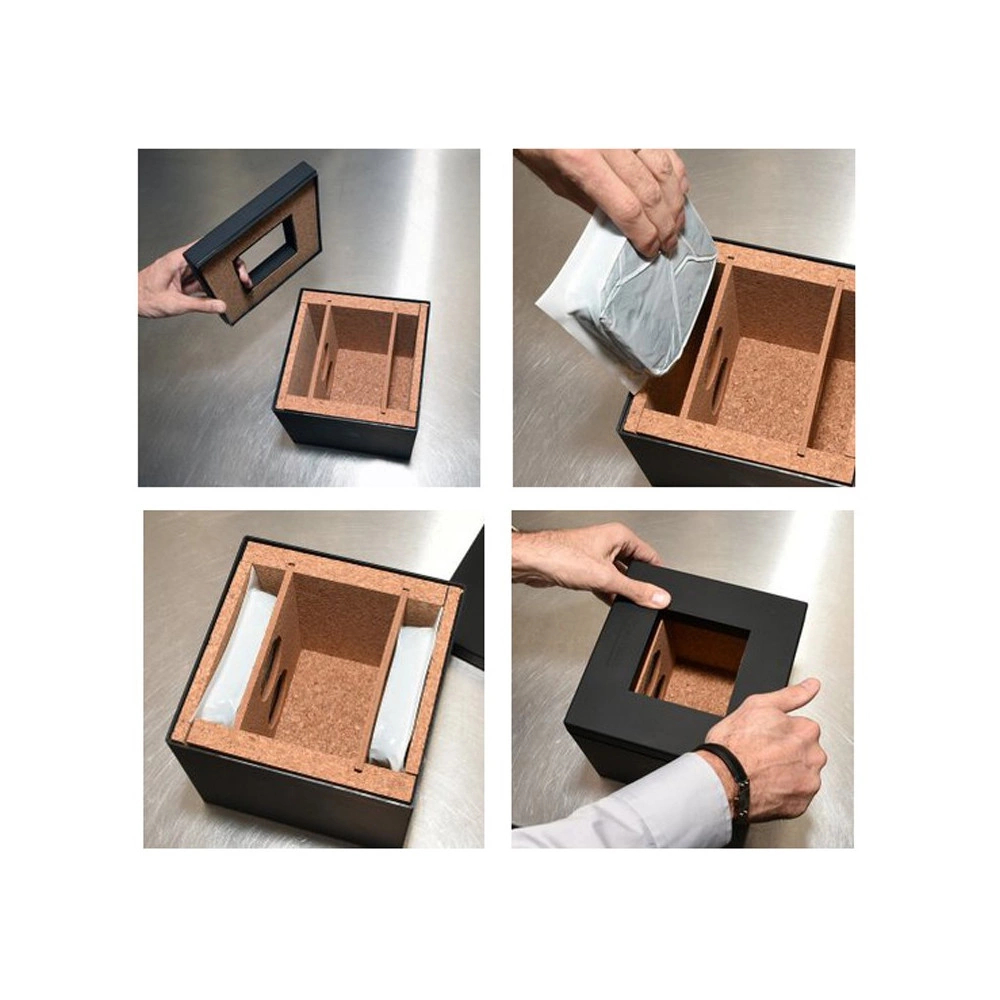Seau réfrigérant sans eau ni glaçon ! Grâce aux propriétés isotherme du liège, un matériau naturel et 100% recyclable, le seau So Fresh conservera votre bouteille à une température constante entre 3 et 7°C pendant 4 heures. So Fresh est simple d'utilisation, il vous suffit de prendre les gels alimentaire fournis dans votre congélateur afin de les insérer dans le So Fresh, puis refermer le couvercle ! Rapide et super simple, plus besoin d'avoir une tonne de glaçons.. et fini les bouteilles trop humides ! Matériel isolant 100% naturel en liège Dimensions : L 19,3 x l 19,3 x H 19,5cm Durée de conservation: 4 heures Passe au lave-vaisselle