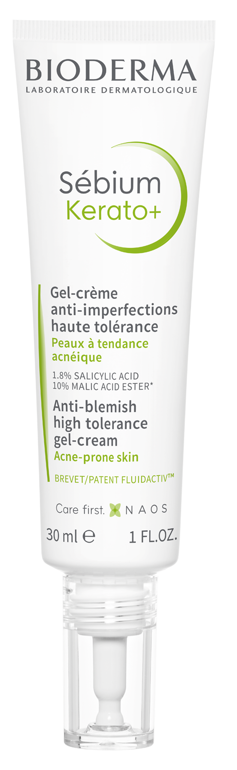 INNOVATION. La recherche du Laboratoire Bioderma a mis au point un duo unique d’actifs kératolytiques (acide salicylique + ester d’acide malique) combinant haute efficacité sur les imperfections et haute tolérance pour préserver le confort de la peau. Sébium Kerato+ réduit rapidement les boutons et points noirs et améliore le renouvellement de l’épiderme pour prévenir le risque de marques post-boutons. Le brevet FLUIDACTIV™, en normalisant biologiquement la qualité du sébum, prévient l’apparition de nouvelles imperfections. Texture non grasse, non collante. Hydratation 8h. Testé sous contrôle dermatologique.