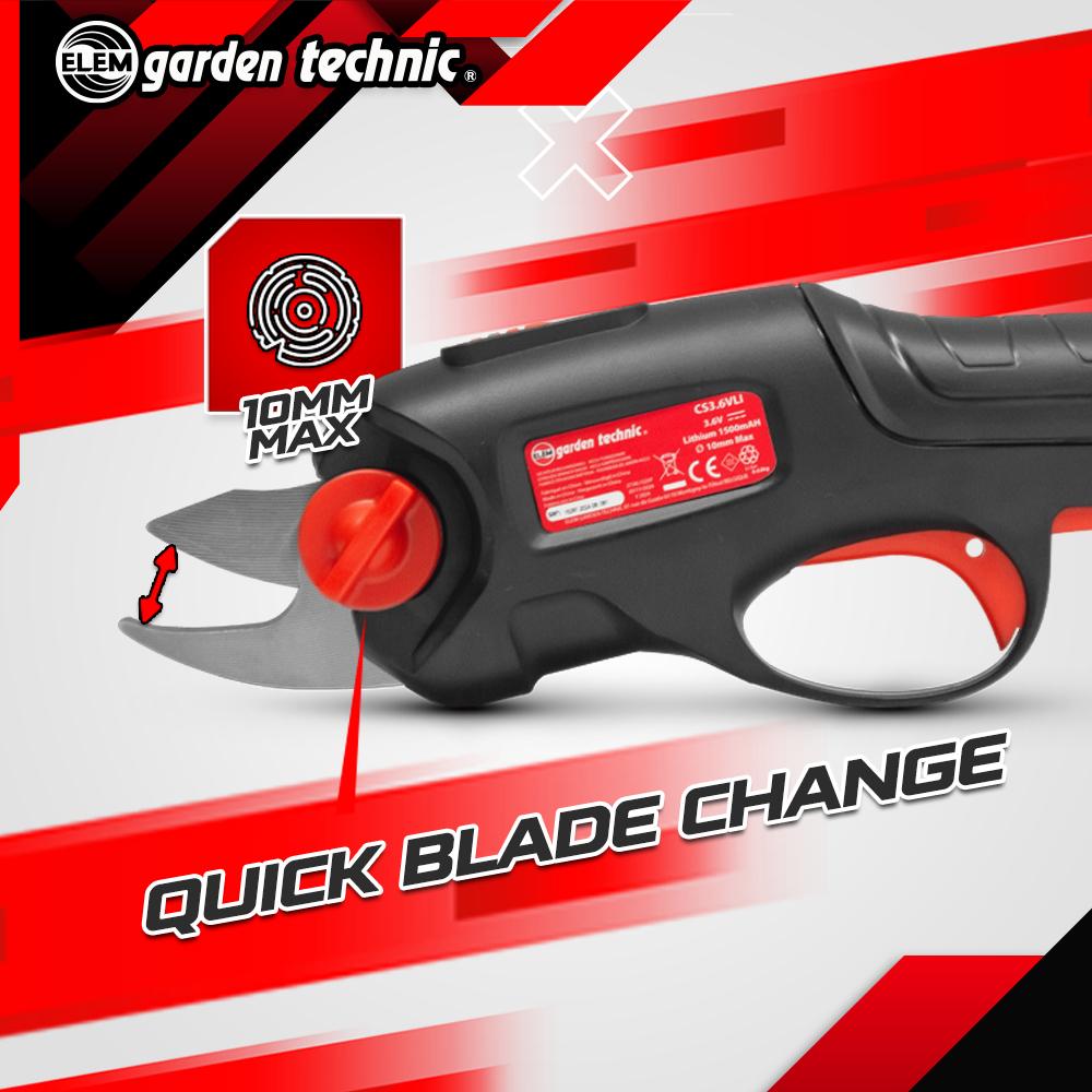 Sécateur rechargeable 3.6V lithium livré avec batterie intégrée et chargeur - Elem Garden