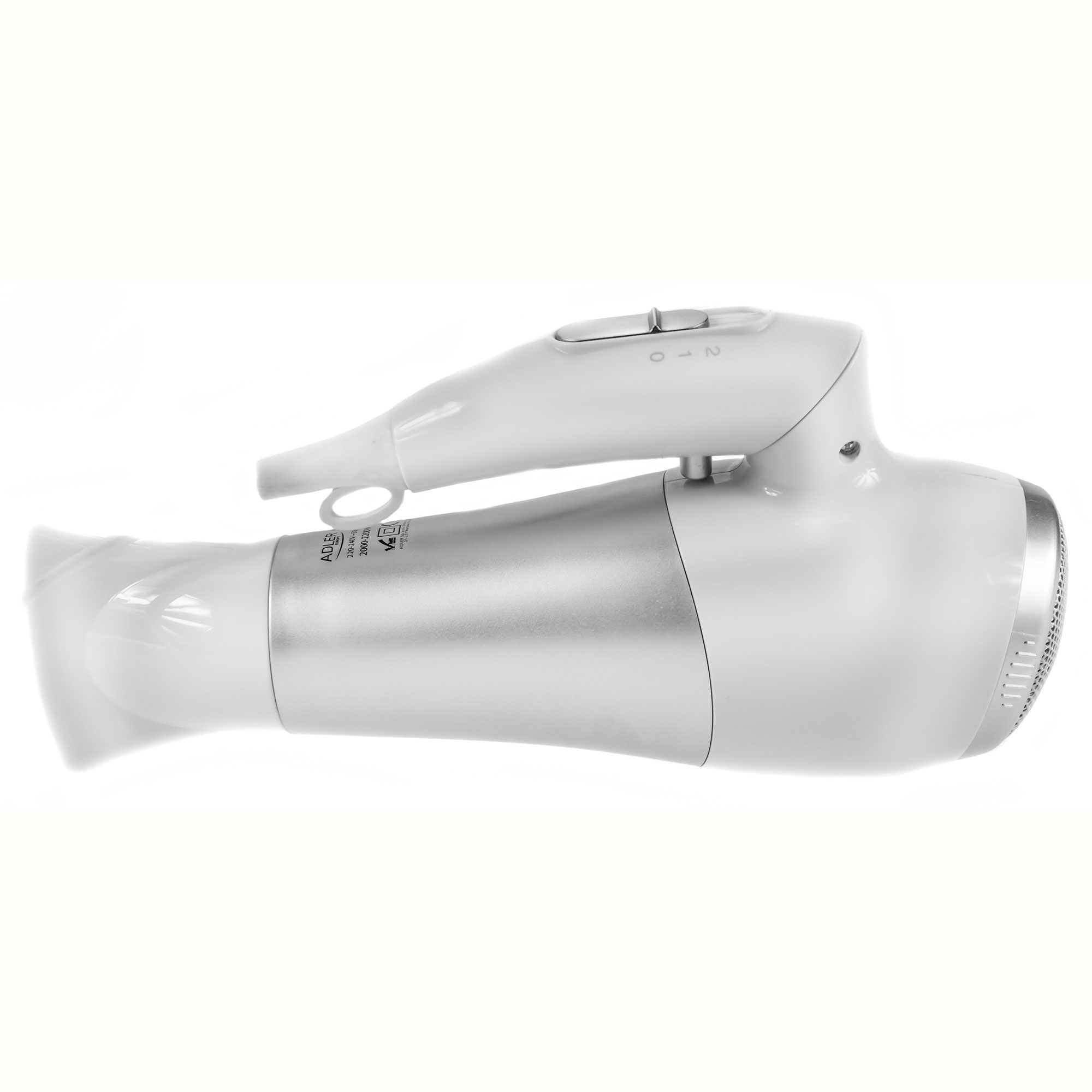 Sèche-cheveux de Voyage Pliable 2 Niveaux de Puissance, Air Froid Buse 360° 2200 Blanc/Gris AdlerAD2225