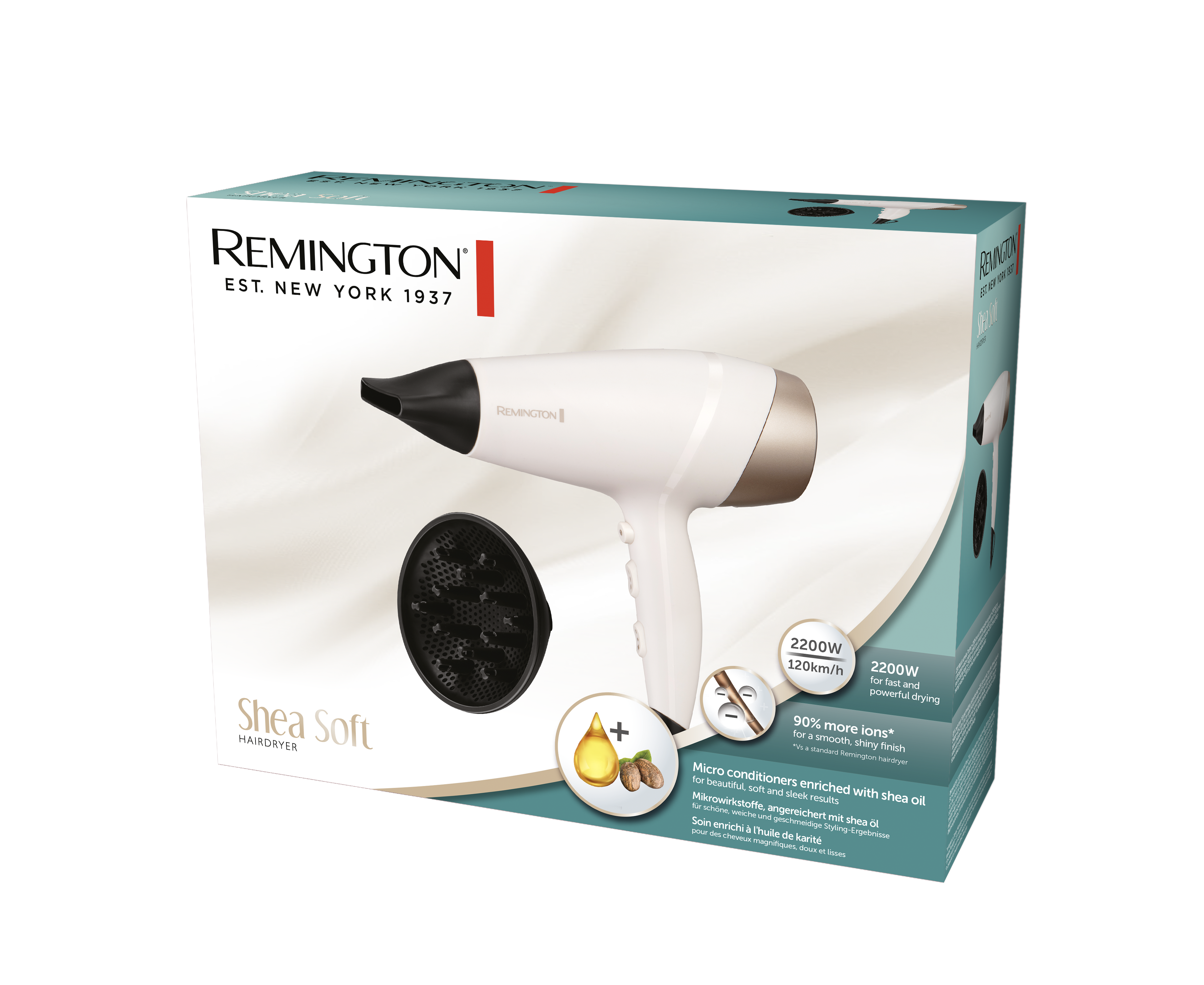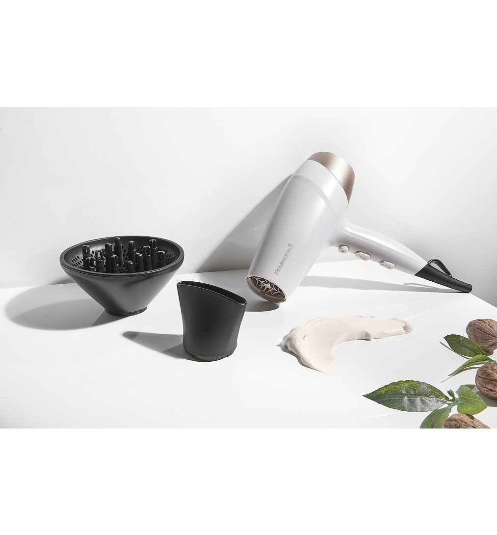 Un sèche-cheveux avec un soin enrichi à l’huile de karité pour de beaux cheveux doux et soyeux Technologie ionique avec 90% d'ions en plus pour une brillance sans frisottis