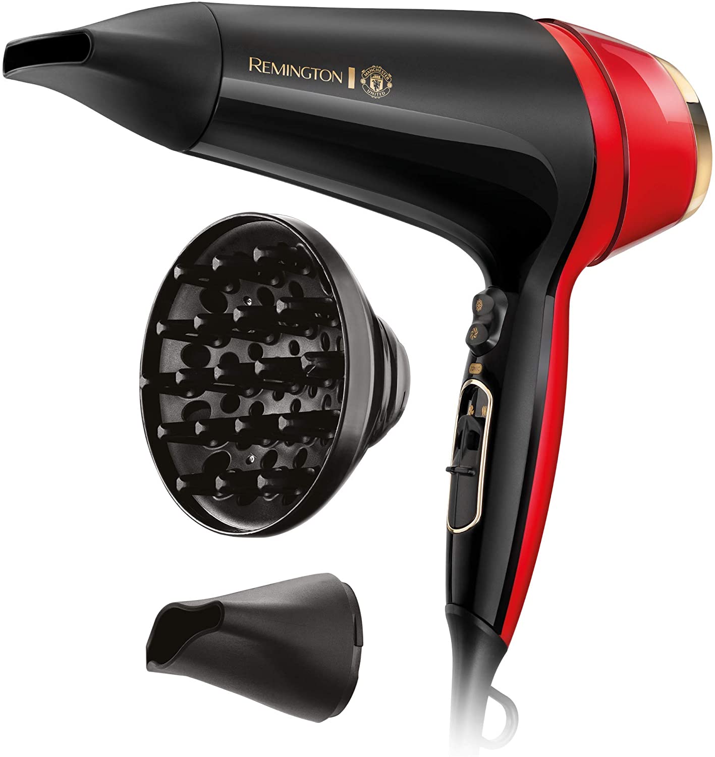 Ce sèche-cheveux de 2200 watts offre des performances de séchage rapides avec moins de chaleur par rapport à un sèche-cheveux Remington standard. Produit officiel Manchester United Sèche-cheveux 2200 Watt avec une puissance de 2400W Sèche avec moins de chaleur pour plus de protection (comparé à un sèche-cheveux Remington 2400W standard) Ionique (90 % plus d'ions qu'un sèche-cheveux Remington standard) pour des cheveux brillants, sans frisottis Plus silencieux, pour une expérience plus agréable Un sac de rangement Manchester United