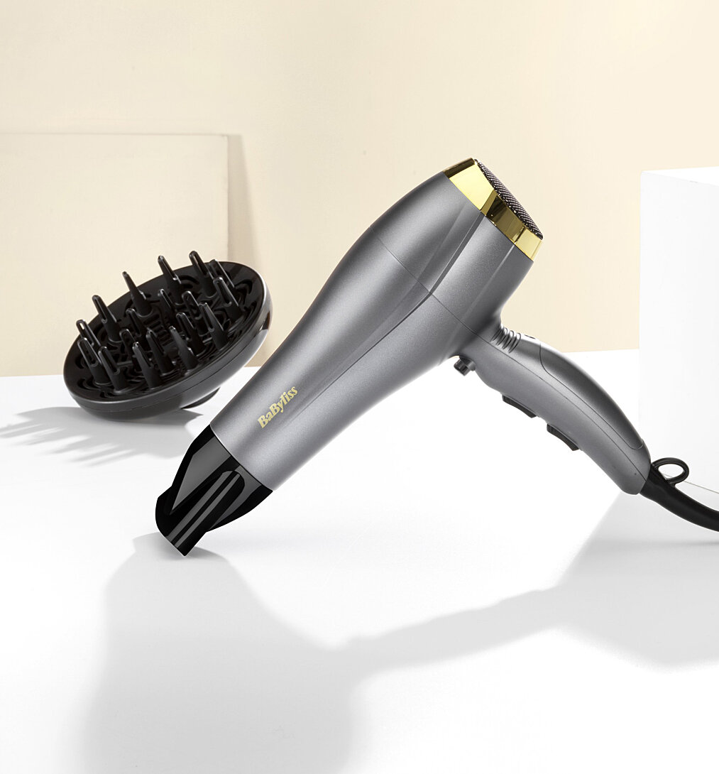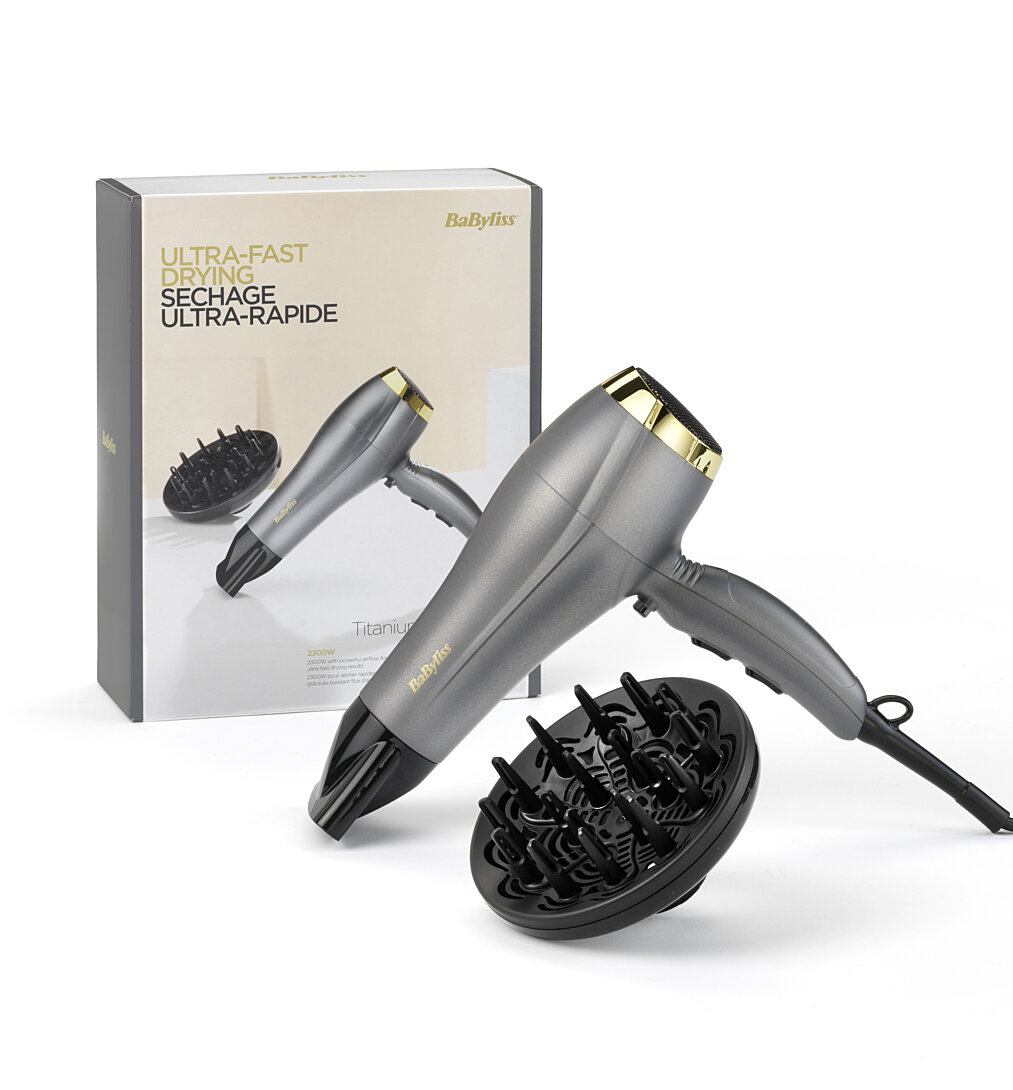 Ce sèche-cheveux Titanium Gold de BaByliss est dotée d'une puissance de 2300W. Sa fonction ionique libère des ions pour réduire les frisottis, éliminer l'électricité statique, lisser et renforcer la brillance, pour des cheveux en pleine santé. Ses 3 températures et 2 vitesses vous permettent une coiffure sur-mesure et sa touche air frais vous permet de fixer la coiffure pour une tenue longue durée. Sa technologie titane céramique permet un flux d'air homogène et maitrisé pour un résultat précis. Grâce à son concentrateur, vous pourrez facilement réaliser des brushing précis. Doté également d'un diffuseur, ce sèche-cheveux Keratin Shine 2100 de BaByliss sera votre compagnon idéal pour sécher vos boucles sans les abîmer, pour un résultat ultra naturel et de belles boucles rebondies. Le cordon rotatif de 2,2m offre un grand confort d'utilisation.