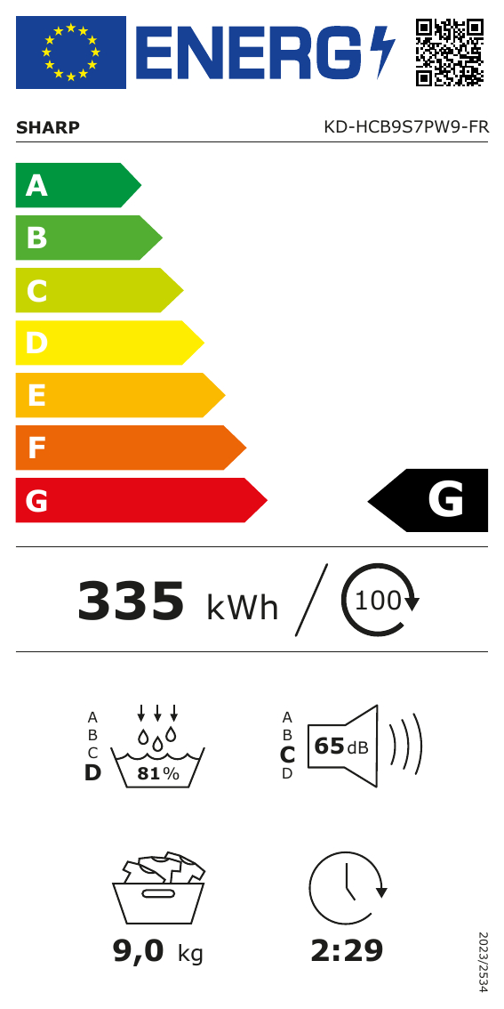 | Libellé | Sèche-linge à condensation 9 kg Sharp KD-HCB9S7PW9 |