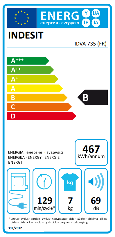 Libellé Sèche-linge à évacuation 7kg INDESIT 60cm, IDVA 735