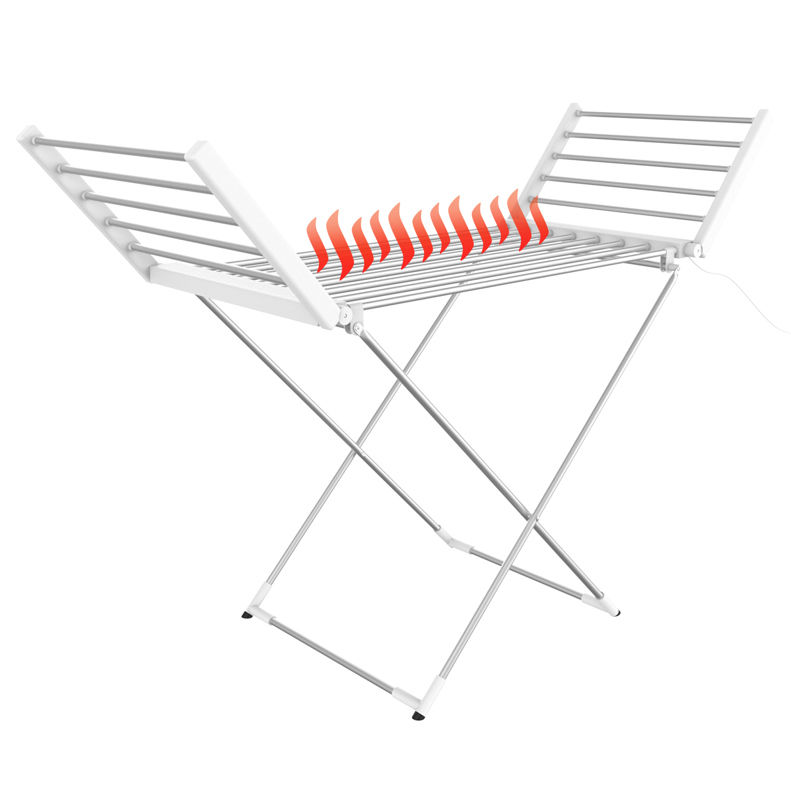 Fatigué d'attendre que vos vêtements sèchent par temps froid ou humide? Vous recherchez une méthode plus rentable et plus pratique qu'un sèche-linge? Utilisez ce support de séchage chauffé pour sécher efficacement le linge, même par temps frais ou humide. Installez et branchez facilement le séchoir, en rangeant votre linge sur la penderie spacieuse. Cet appareil est suffisamment solide pour supporter le poids d'une charge de linge complète et sert également de porte-serviettes chauffant. Pliable à plat pour un rangement facile, cet étendoir occupe peu de place lorsqu'il n'est pas utilisé.