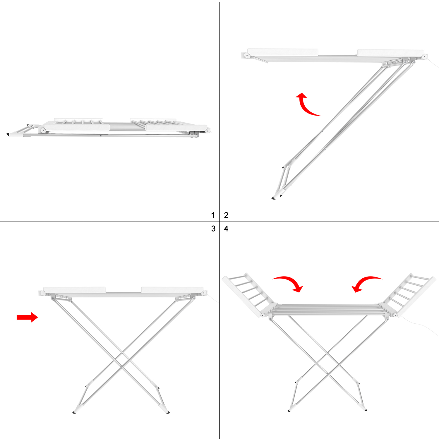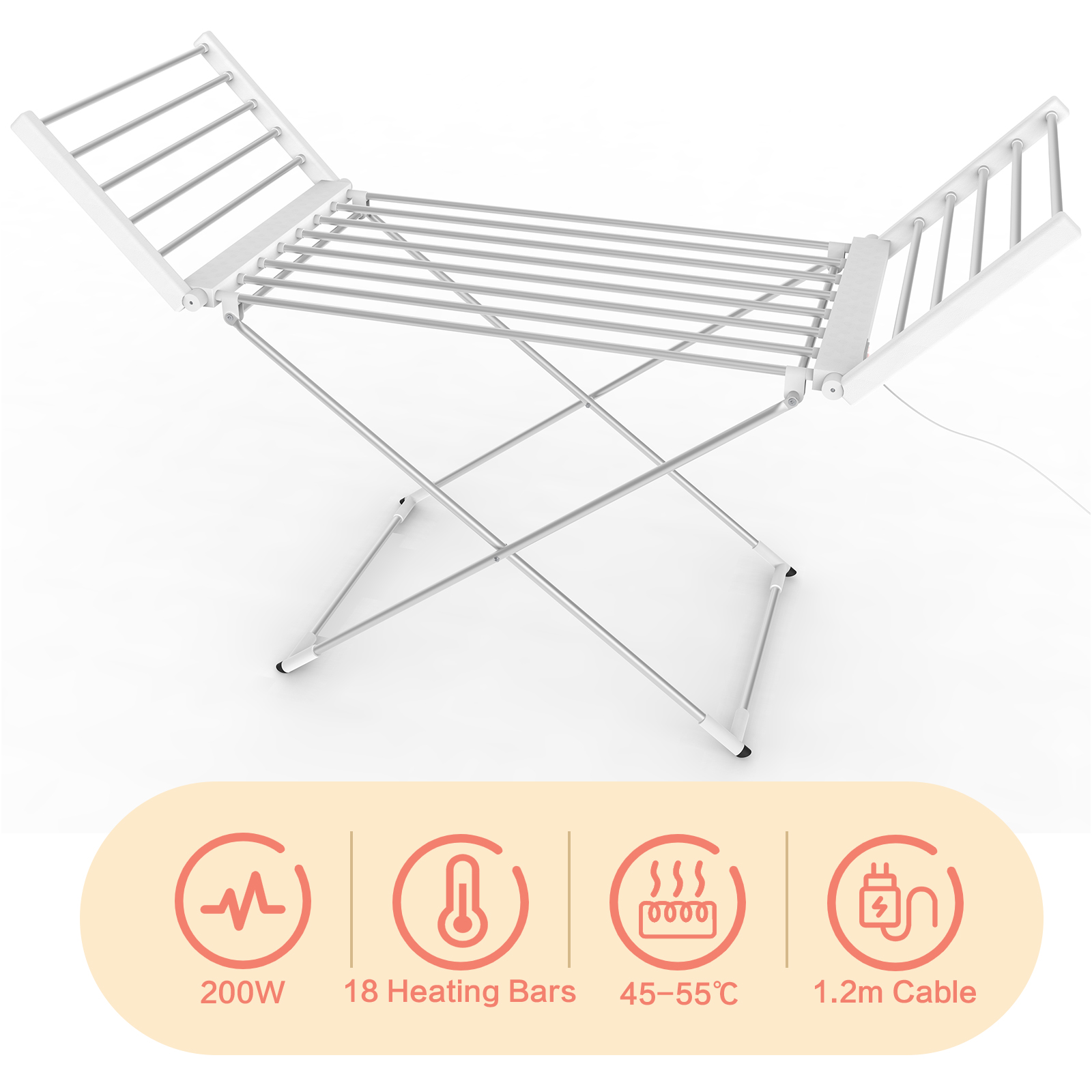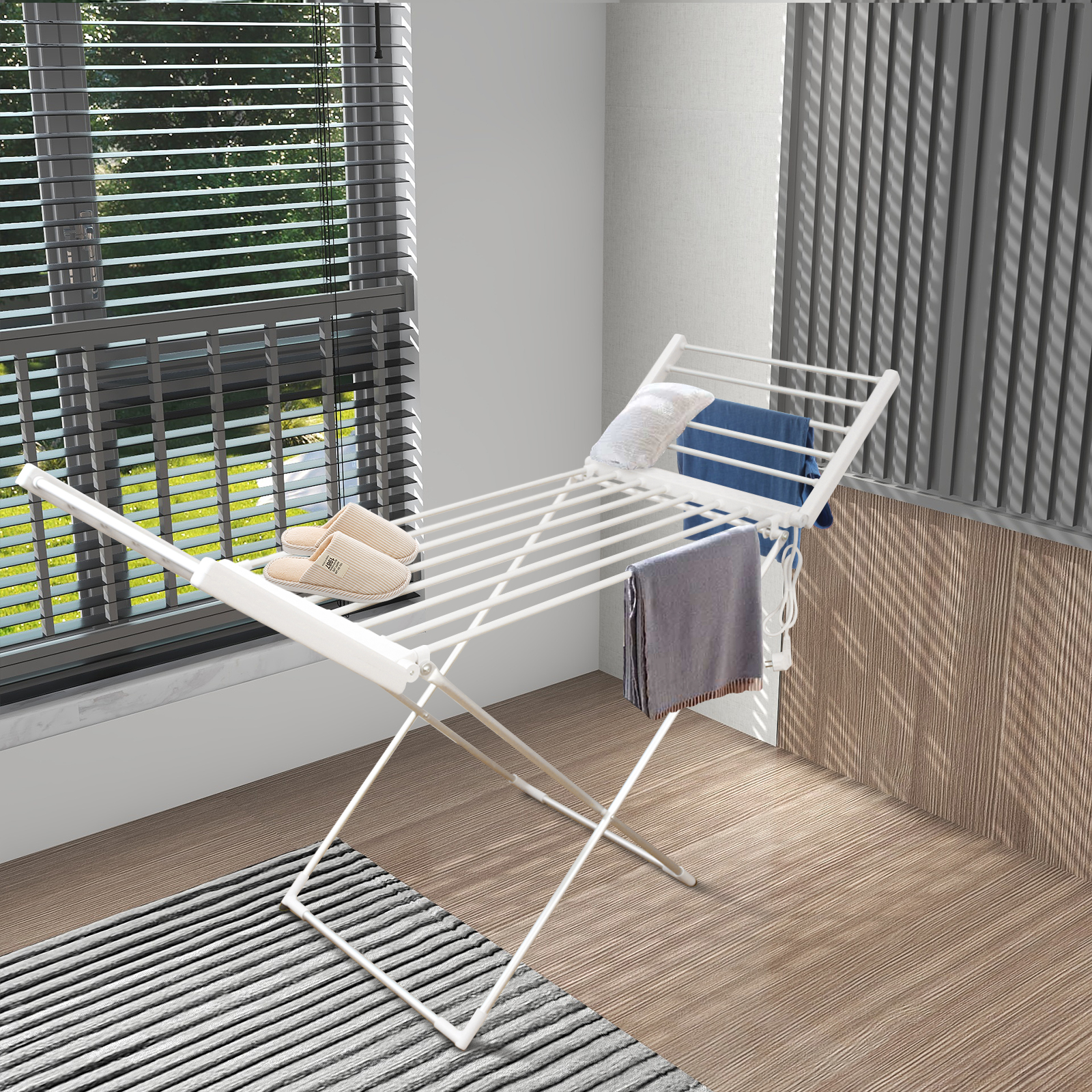 Fatigué d'attendre que vos vêtements sèchent par temps froid ou humide? Vous recherchez une méthode plus rentable et plus pratique qu'un sèche-linge? Utilisez ce support de séchage chauffé pour sécher efficacement le linge, même par temps frais ou humide. Installez et branchez facilement le séchoir, en rangeant votre linge sur la penderie spacieuse. Cet appareil est suffisamment solide pour supporter le poids d'une charge de linge complète et sert également de porte-serviettes chauffant. Pliable à plat pour un rangement facile, cet étendoir occupe peu de place lorsqu'il n'est pas utilisé.