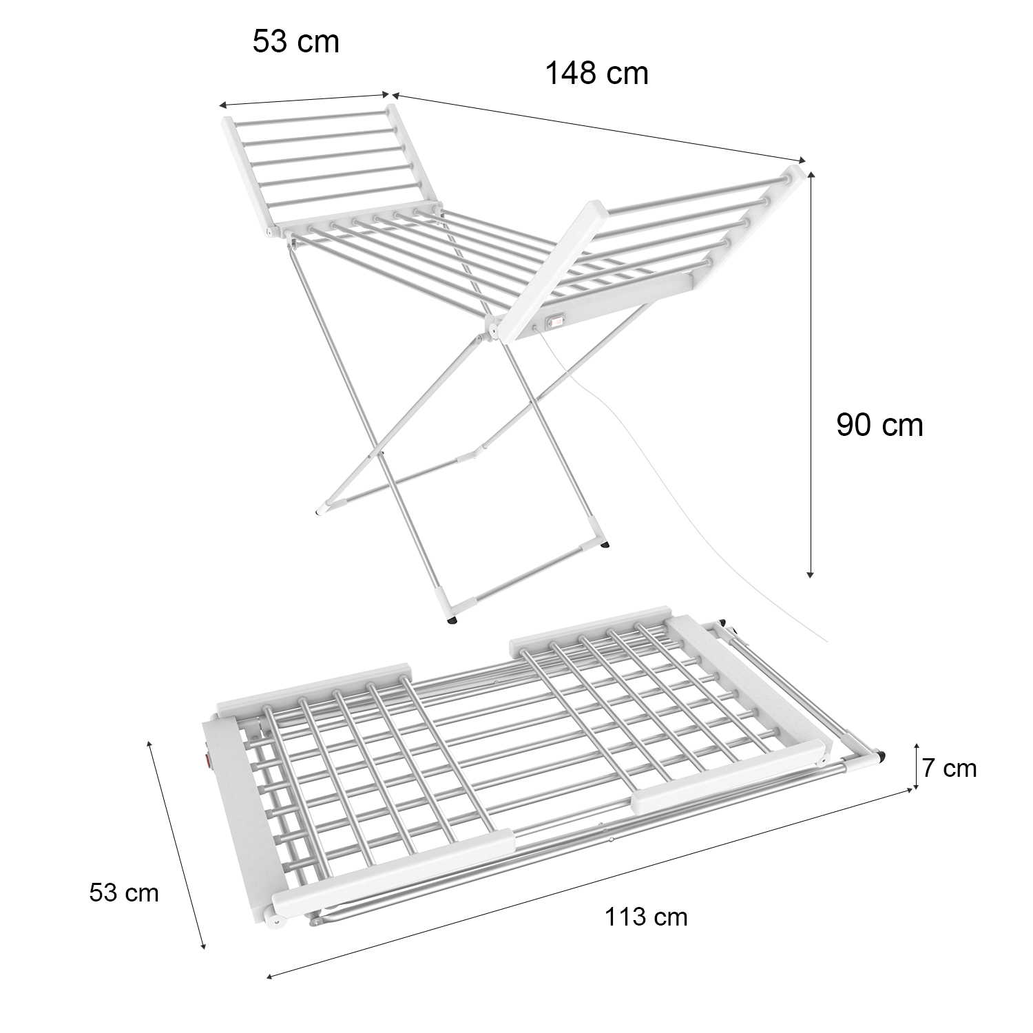 | Libellé | Sèche-Linge Electrique, Etendoir Pliant d'Intérieur à Etages, Classique, Blanc, Dimensions du produit replié: 113 x 53 x 7 cm |