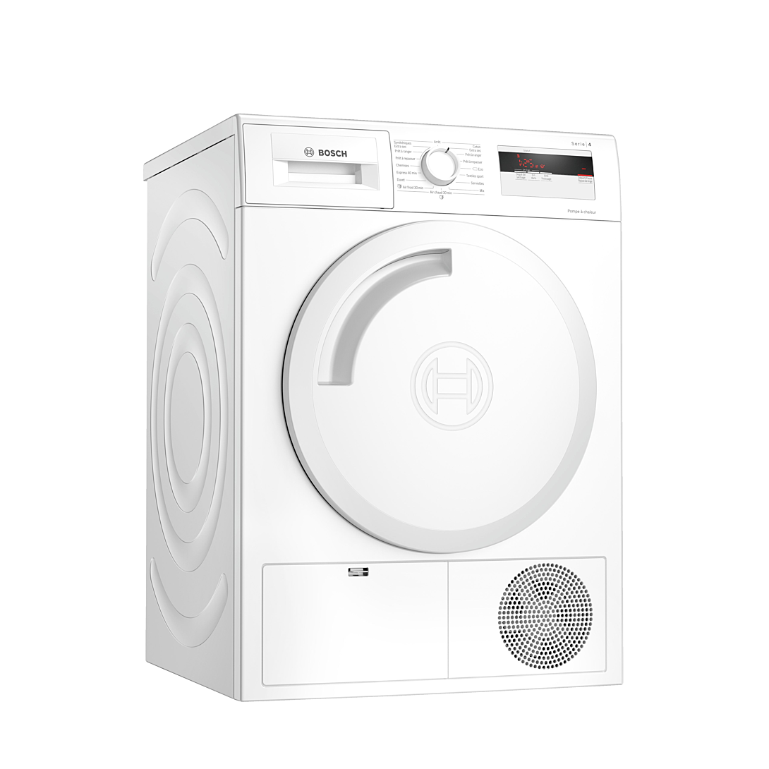 BOSCH - Sèche-linge pompe à chaleur - SERIE 4 - 7 kg - Classe énergie A+ - 243 kWh - Tambour Inox 112 l - Filtre easy clean - Couleur hublot: Blanc- H: 84,20 cm x L: 59,80 cm x P (hors porte): 65,10 cm