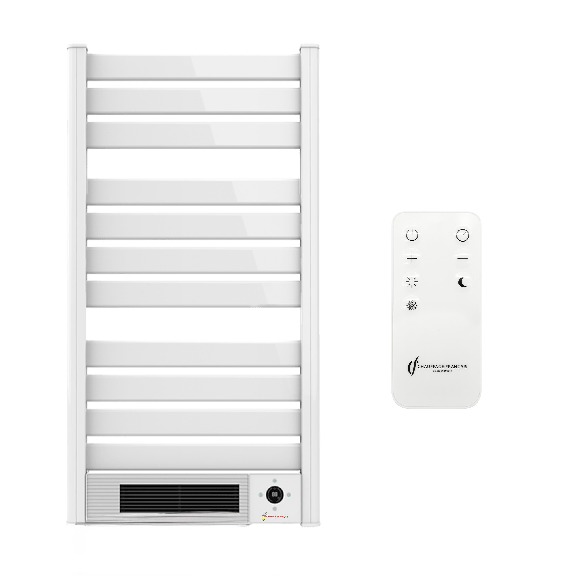Avec son design élégant,il s'intégrera parfaitement dans votre salle de bain. Vous pourrez piloter facilement votre sèche serviette à distance grâce à sa télécommande sans fil incluse.