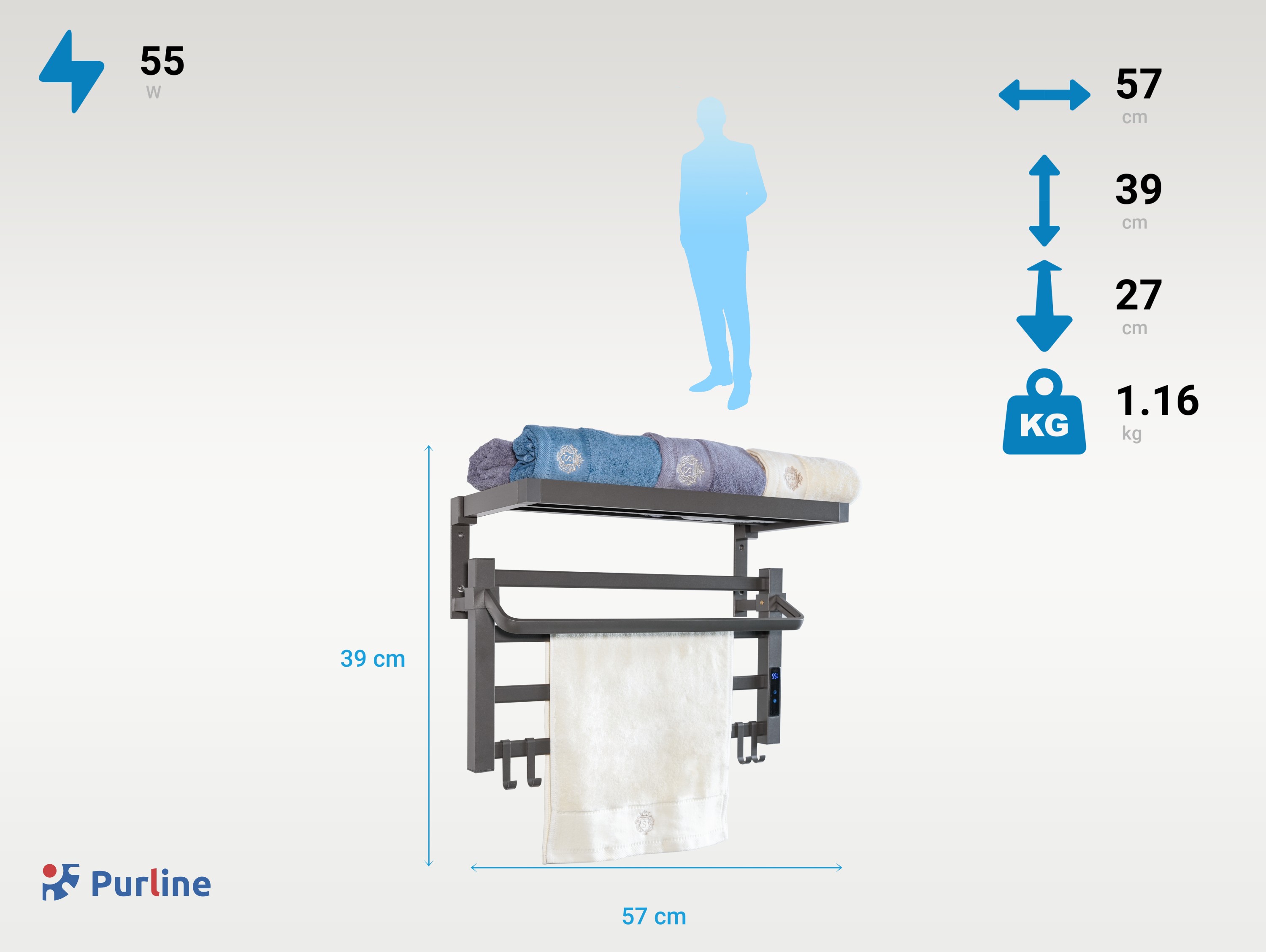 | Libellé | Sèche-serviettes électrique avec étagère gris anthracite 55W |