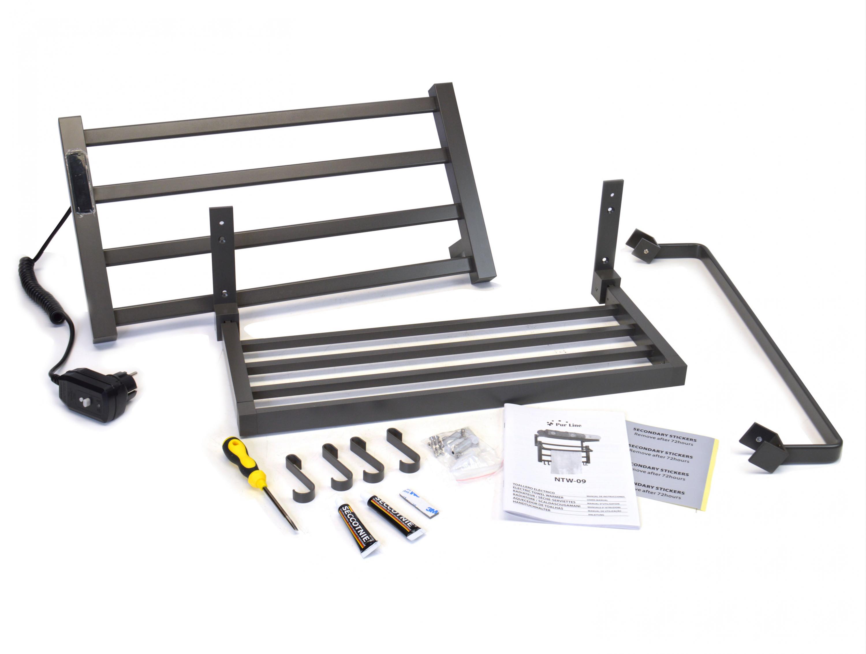 Le NTW-09 a une puissance de 55W et fait office de sèche-serviettes, de chauffe-vêtements et soutient en même temps votre système de chauffage. Il est monté à l'aide d'une bande adhésive double face 3M très résistante et est également prêt à être fixé au mur (il est livré avec des chevilles et des vis). En d'autres termes, il offre les deux options. Il est équipé d'un panneau de commande tactile, d'une sélection de la température et d'une durée de fonctionnement.