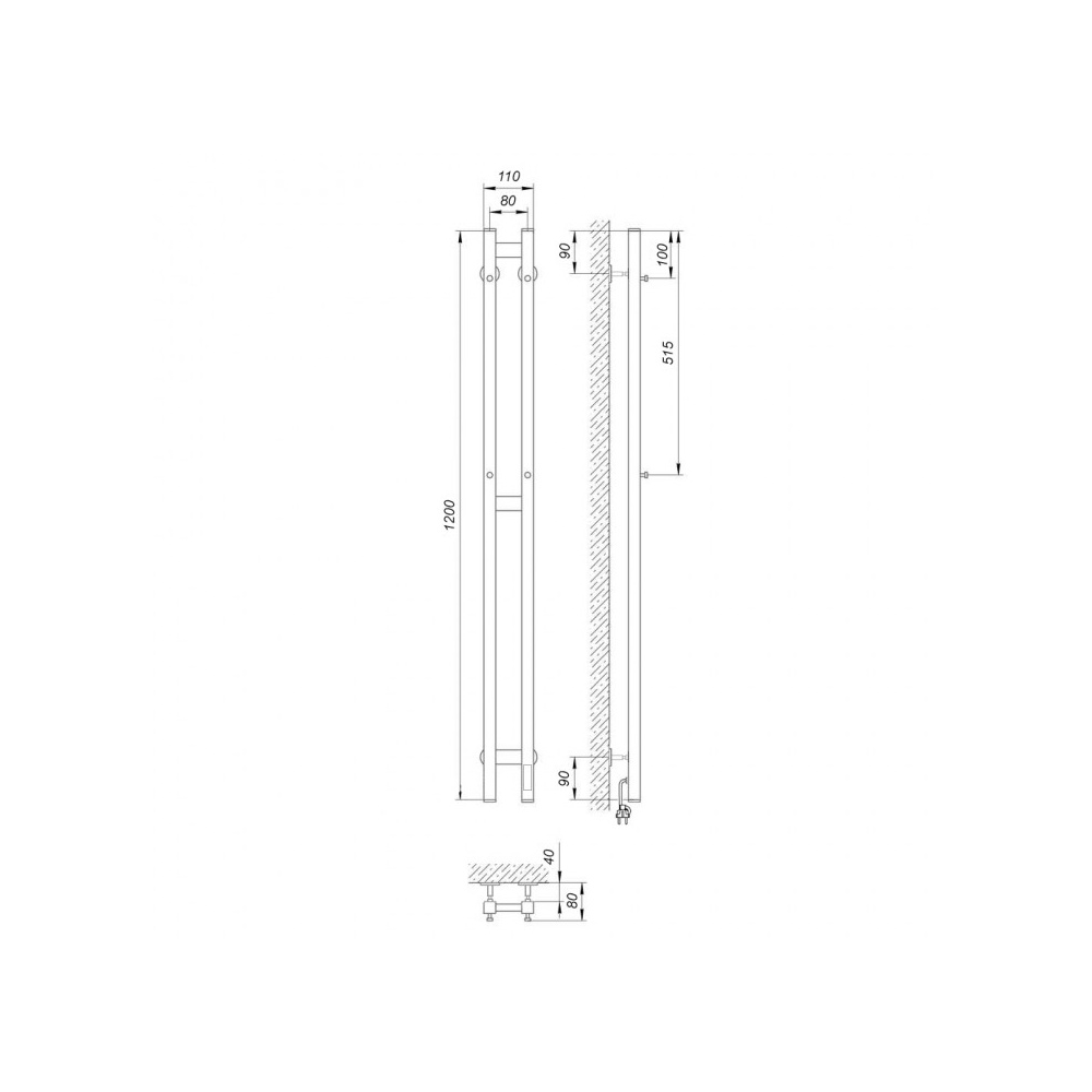 Libellé Sèche-serviettes électrique DUET 80x1200 avec minuterie ECO, 80W, Blanc