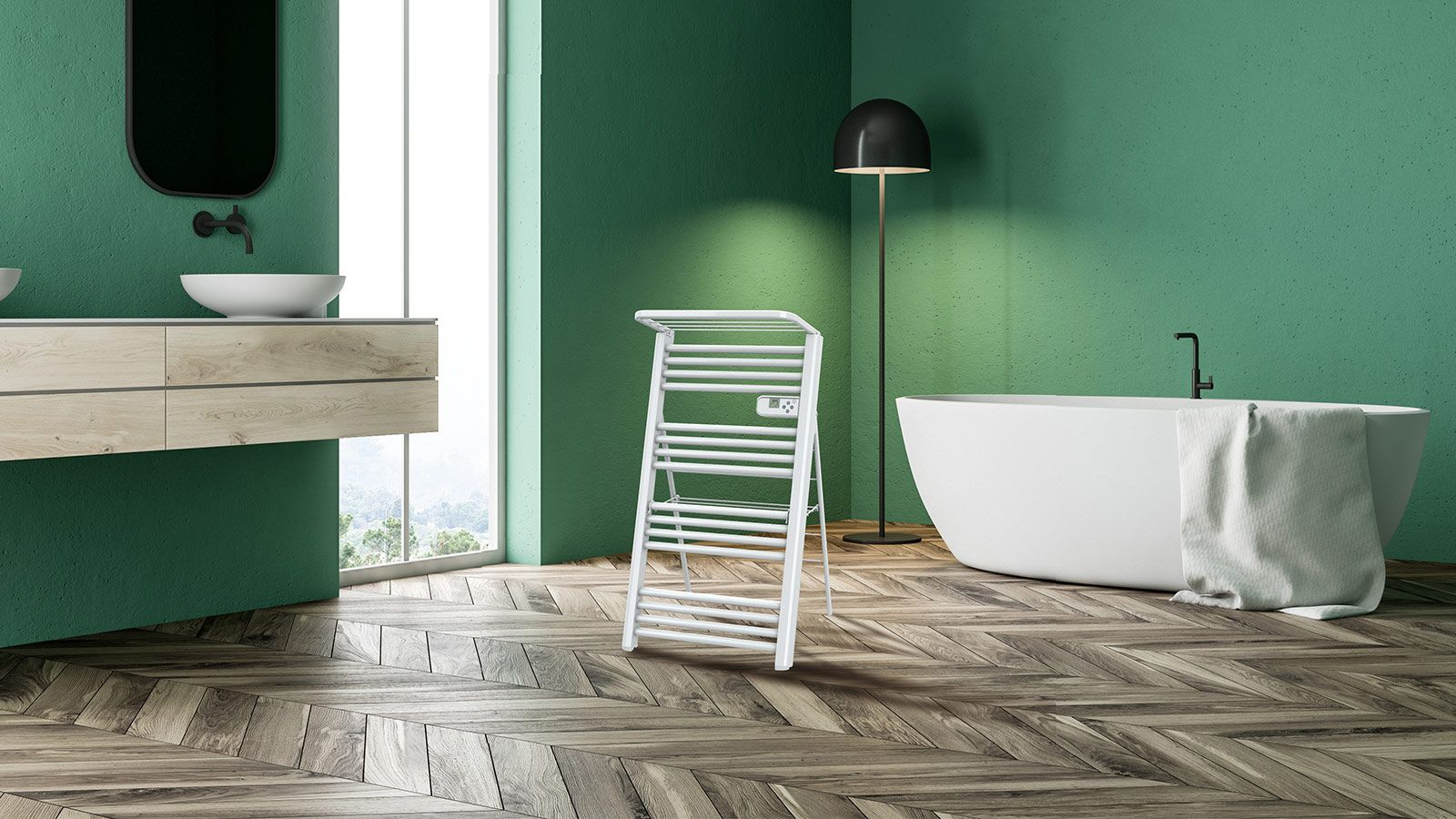 Sèche Serviettes sans fluide MOBILE 500W blanc Sèche-serviette sec ultra léger et mobile Technologie brevetée sans fluide Très grande rapidité de montée en température Homogénéité de la chaleur pendant la montée Pas de risque de fuite ni de corrosion