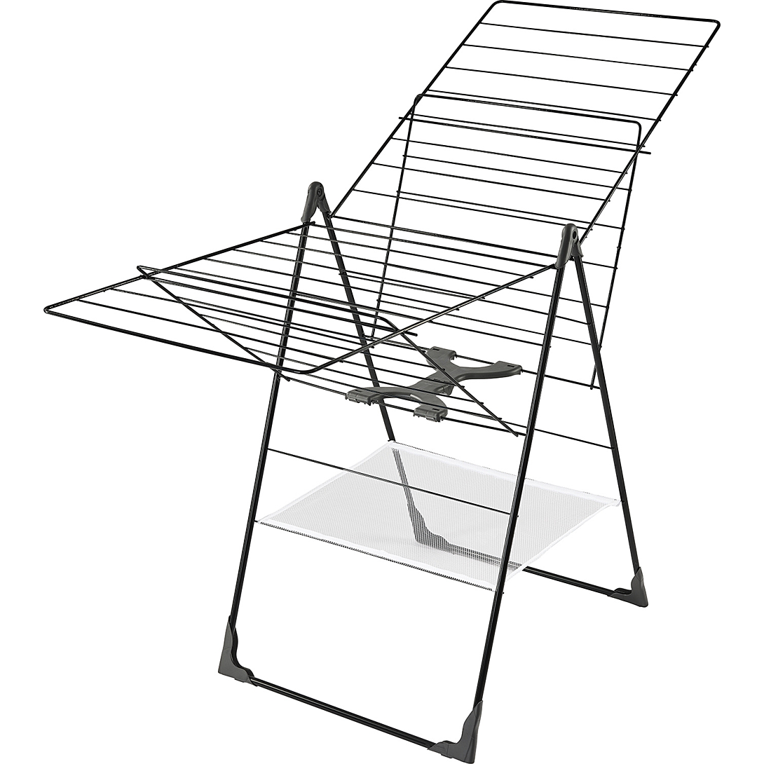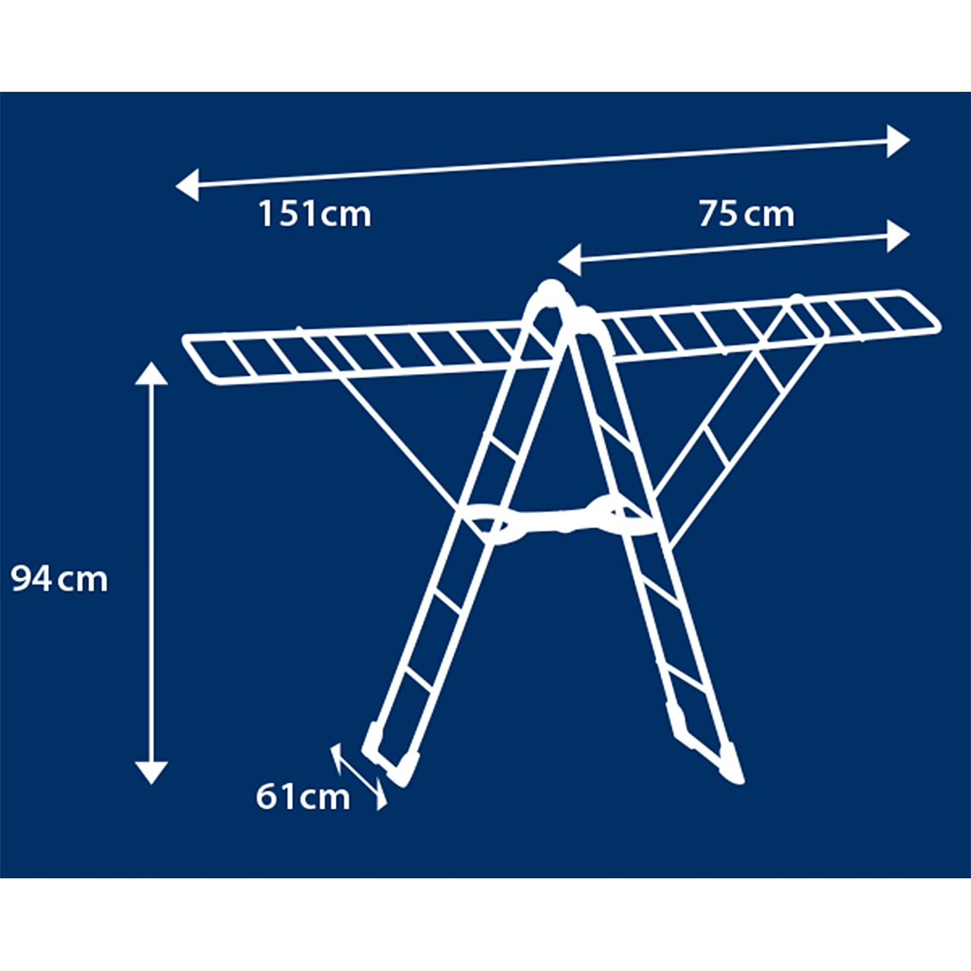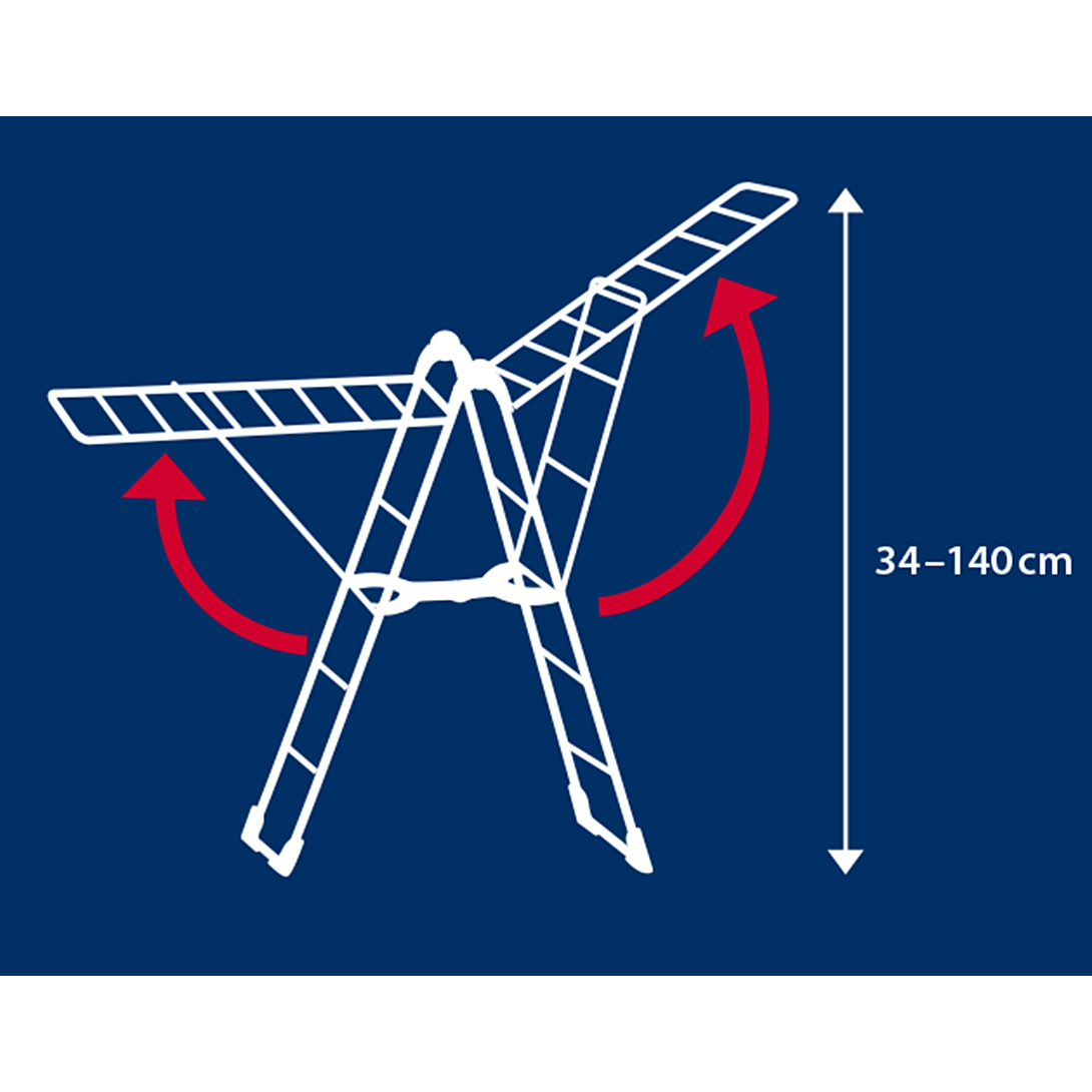 › Longueur d‘étendage : 25 m › Barres de séchage plastifiées › Ailes individuellement adaptables à la hauteur souhaitée max. 140 cm, adapté aussi pour les longues pièces › Inclus : filet de séchage › Taille : H 94 x L 151 x P 61 cm › Made in France › Garantie 3 ans