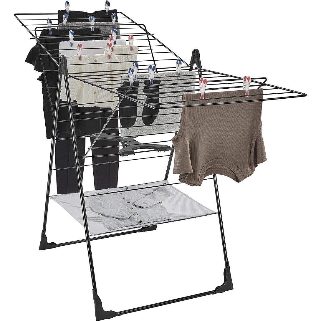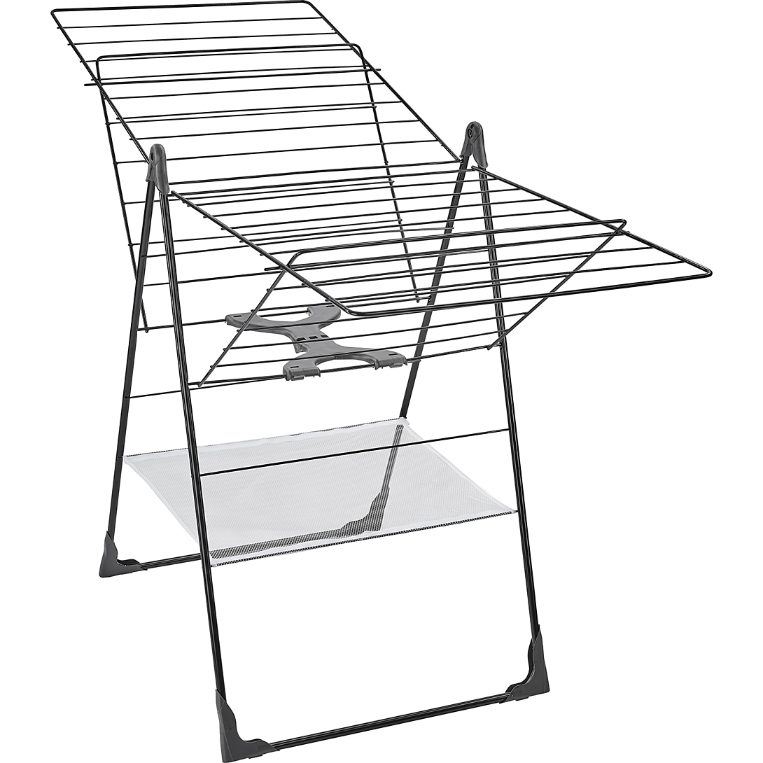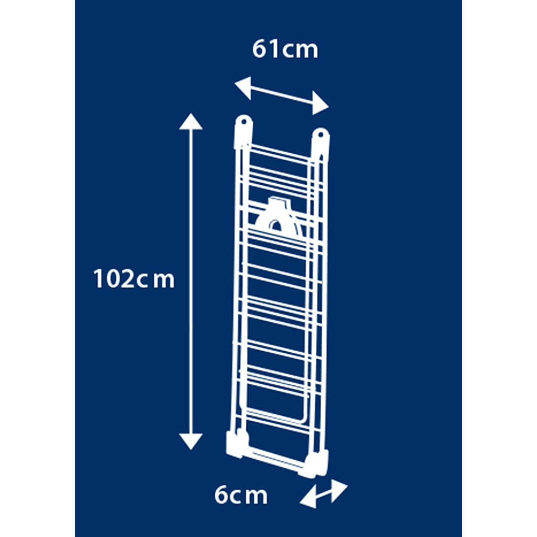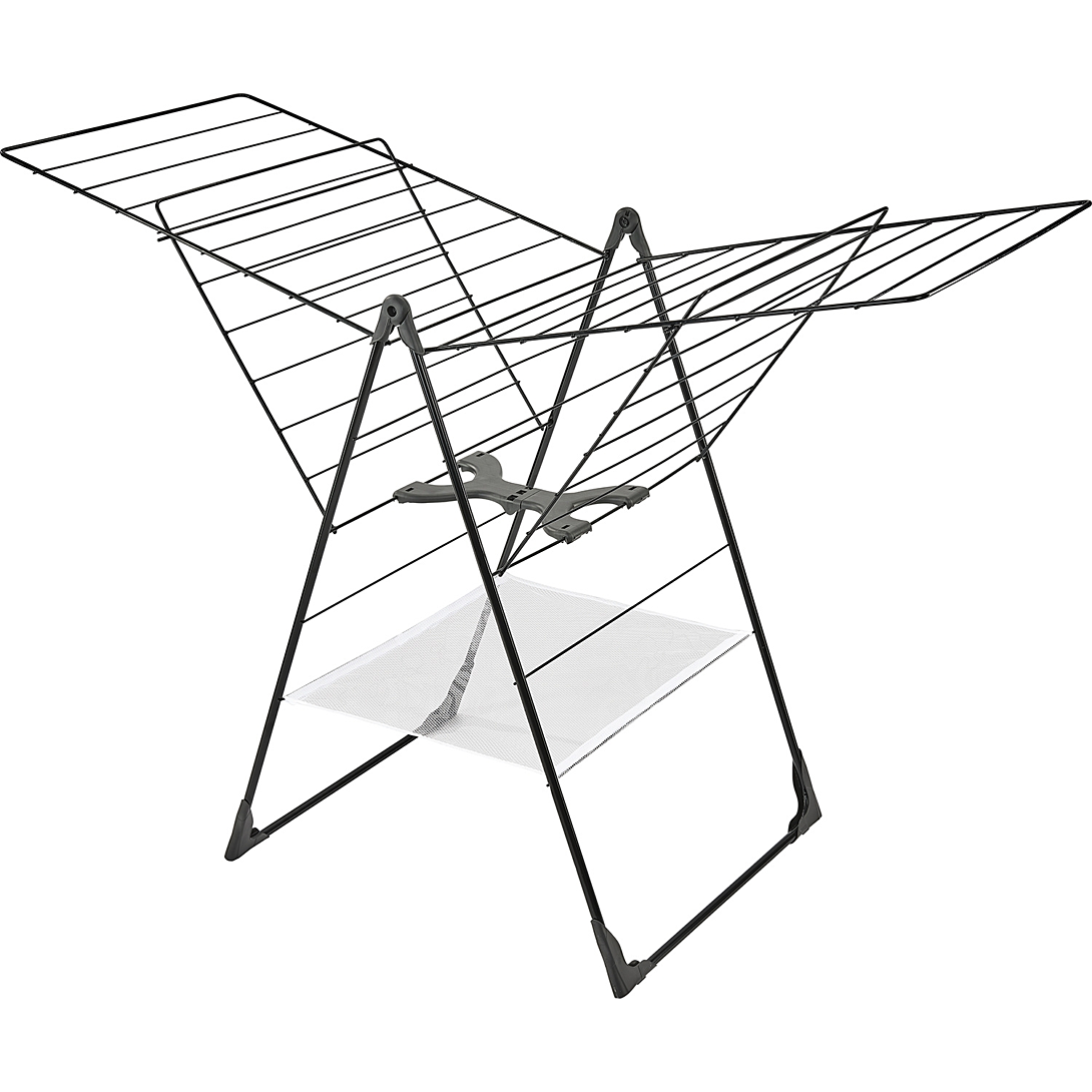 › Longueur d‘étendage : 25 m › Barres de séchage plastifiées › Ailes individuellement adaptables à la hauteur souhaitée max. 140 cm, adapté aussi pour les longues pièces › Inclus : filet de séchage › Taille : H 94 x L 151 x P 61 cm › Made in France › Garantie 3 ans