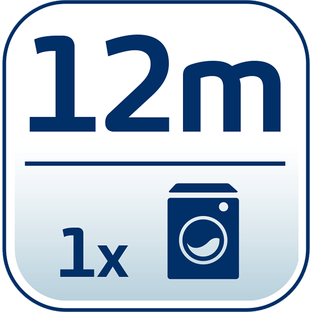 › Longueur d'étendage : 12 m › Hauteur des ailes : 93 cm › Remplissages machine : 1 › Peut rentrer dans une baignoire › Taille : H 76 x L 149 x P 43 cm › Garantie 5 ans