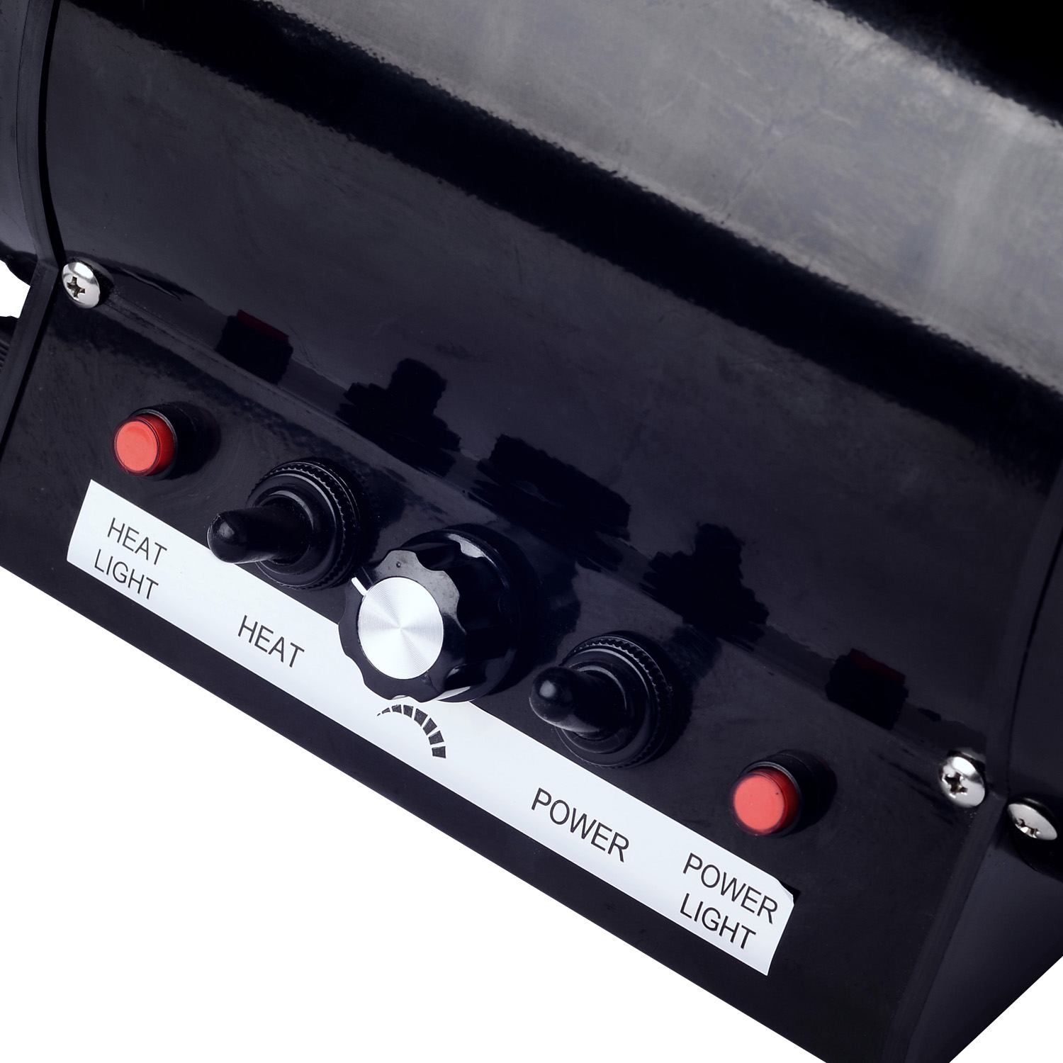 -Diffuse uniformement de la chaleur par controle du debit d'air (equipe d'un variateur de vitesse) et de la temperature (reglage a 2 positions: chaud et normal)