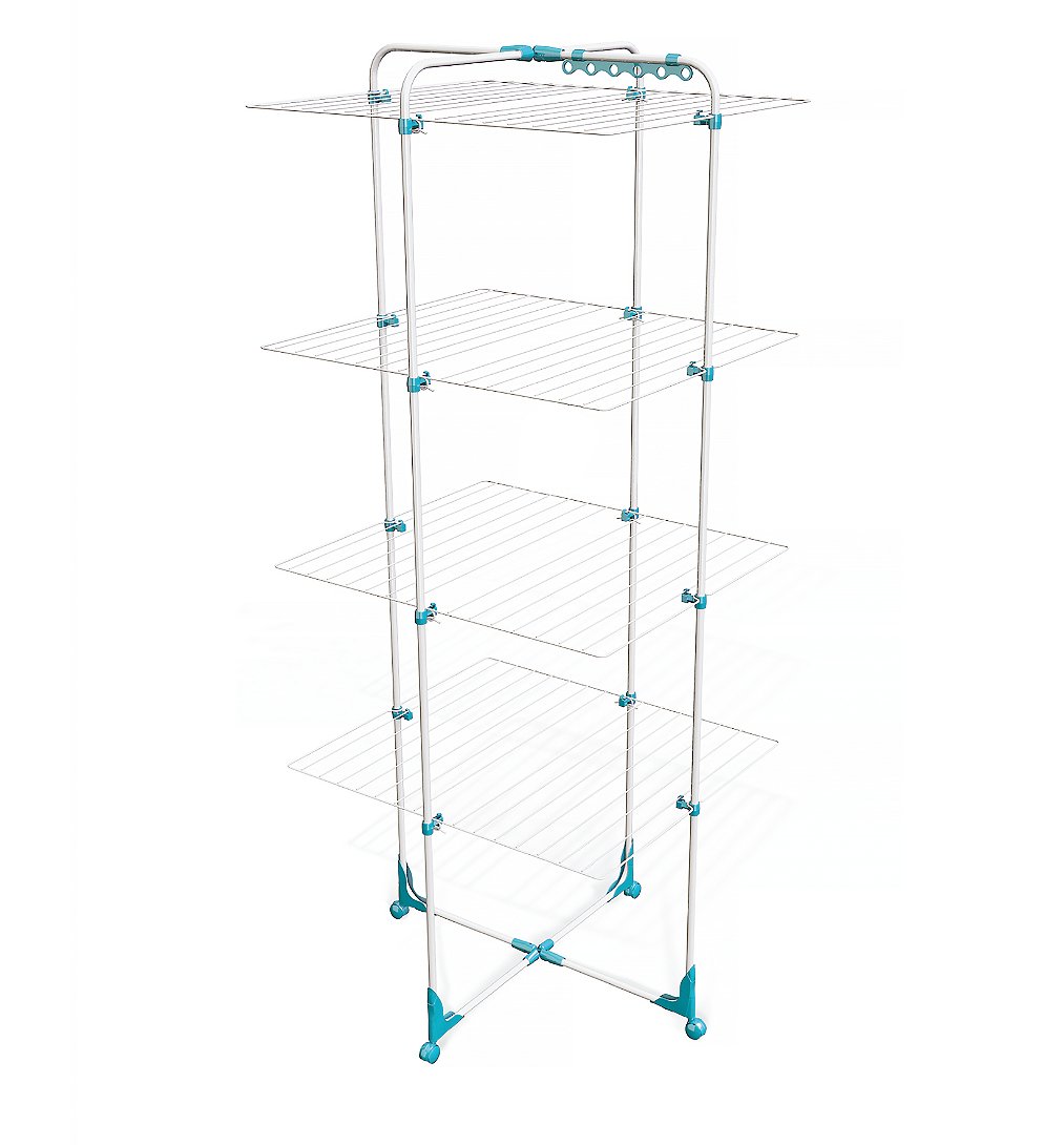Séchoir tour 45m en acier + plastique - 4 roues multi directionnelles + 1 support cintre + revêtement anti rouille