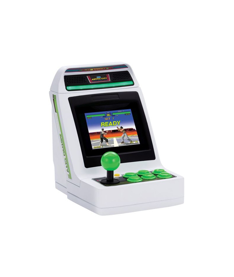En célébration de son 60e anniversaire, Sega vous propose une version miniature de sa fameuse borne d'arcade : la Sega Astro City. L'Astro City, qui a connu un énorme succès dans les années 1990 avec plus de 50 000 bornes installées rien qu'au Japon, proposait pour la 1ère fois aux joueurs le fameux jeu de combat 3D, Virtua Fighter ! Avec son écran de 4 pouces, son joystick et ses 6 boutons, vous allez pouvoir profiter d'une sélection de 37 jeux Sega parmi les plus célèbres directement dans la paume de votre main ! La mini console Astro City est une fidèle reproduction à l'échelle 1/6 de la borne d'origine. À l'époque de sa sortie, cette dernière était disponible sous forme de console en résine. Comme pour sa grande soeur, l'Astro City Mini, est, elle aussi, en résine et reprend rigoureusement le même design que la borne originale. L'Astro City Mini contient 36 jeux d'arcade classiques Sega pré-installés, dont la version 720P-HD de Virtua Fighter.