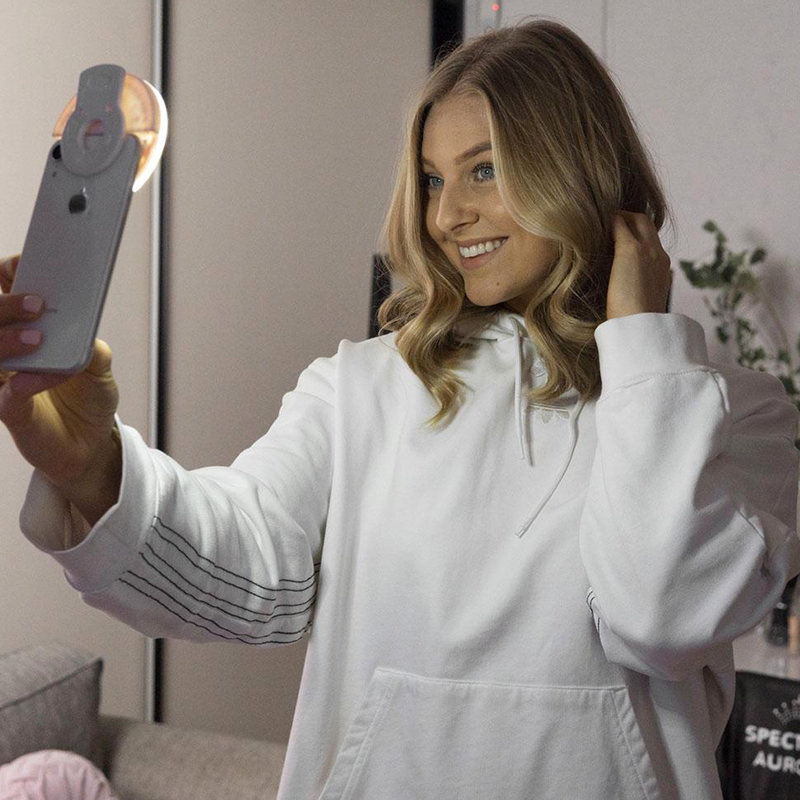 SELFIE LIGHT L'Anneau à LED Ultra Éclairant : des selfies réussis sur smartphone Il est devenu l'accessoire smartphone préféré des influenceuses. Il débarque sur Shop-Story ! Compatible avec tous les téléphones Basculez sur le mode autoportrait et réalisez des selfies incroyables grâce à la lampe Selfie Light. Très simple d'utilisation, elle se clipse en haut de votre téléphone. Son anneau à LED vous donne un éclairage à la fois puissant et homogène. Photographiez-vous n’importe où, n’importe quand, de jour comme de nuit, avec ce gadget révolutionnaire ! Le Selfie Light est compatible avec tous les smartphones, iPhone, Samsung, Huawei, etc. jusqu’à 15 mm d’épaisseur. De plus, cette lampe n’abîme pas votre téléphone. Ses bandes antidérapantes et moelleuses le protègent et permettent ainsi de ne pas rayer l'écran. Un design au top pour un éclairage parfait Le design du Selfie Light a été étudié pour ne pas dénaturer le look de votre appareil. Avec sa forme d'anneau lumineux, elle vous procure le meilleur éclairage possible. Éclairage réglable et assistant photo Pour vous assurer de prendre des selfies parfaits, vous pouvez régler l’éclairage avec trois niveaux de luminosité différents : faible, moyen et élevé. Le Selfie Light s'adapte à la lumière du jour comme aux lueurs de la nuit, que vous soyez dans la nature, en boîte de nuit, ou en ville avec les éclairages publics, votre photo sera réussie. Selfie Light vous aide aussi lors de vos prises de vue en mode standard, bien pratique lorsque vous manquez de luminosité. Utilisation longue durée Les ampoules LED sont celles qui consomment le moins d’électricité et qui durent le plus longtemps. La lampe Selfie Light est composée de 24 ampoules. Fournie avec son câble de chargement USB, elle se recharge en un rien de temps. Caractéristiques : Source lumineuse : LED Température de couleur : 5600k Source d'alimentation : batterie rechargeable intégrée Câble USB fourni. Taille: 85 x 27 mm