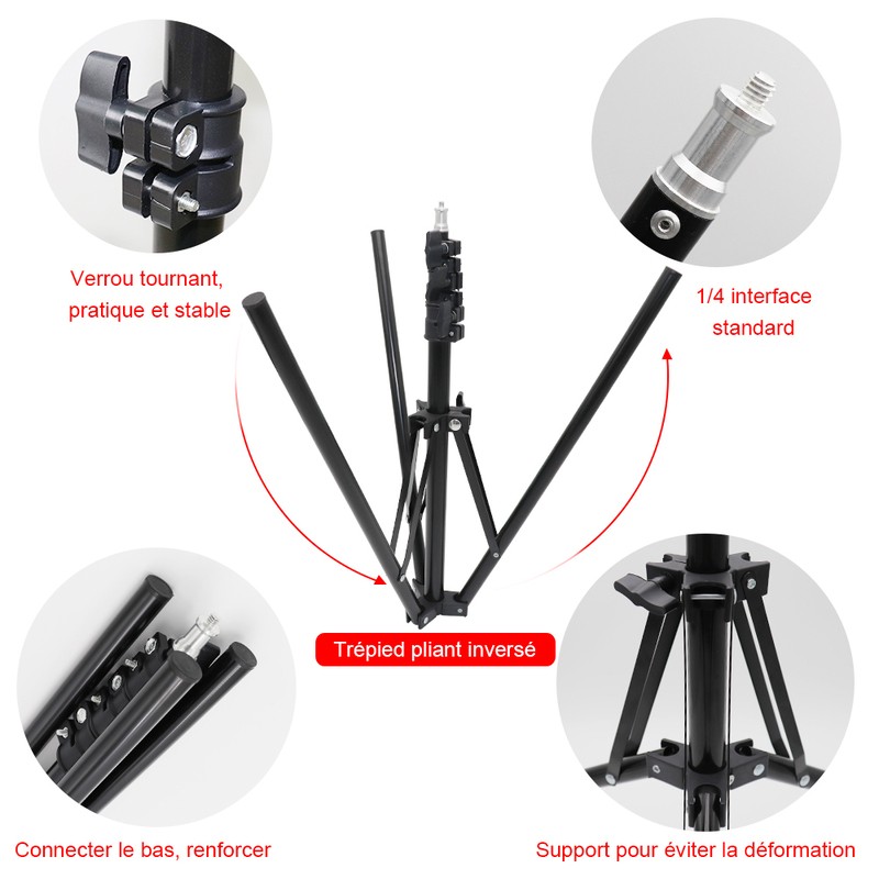 | Plus produit | Envie de prendre une vidéo ou un selfie à distance ? Ce trépied à selfie avec anneau lumineux réglable est là pour vous, avec sa télécommande Bluetooth avec distance effective de 10m |