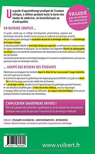 Sémiologie médicale est un guide d'apprentissage pratique de l'examen clinique, utile dès la 2e année des études de médecine (DFGSM2), mais également pour les études de kinésithérapie et d'ostéopathie.
