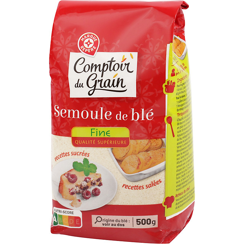Semoule très fine, bon produit. déçue par l'emballage qui se déchire très facilement , il faut le transvaser .