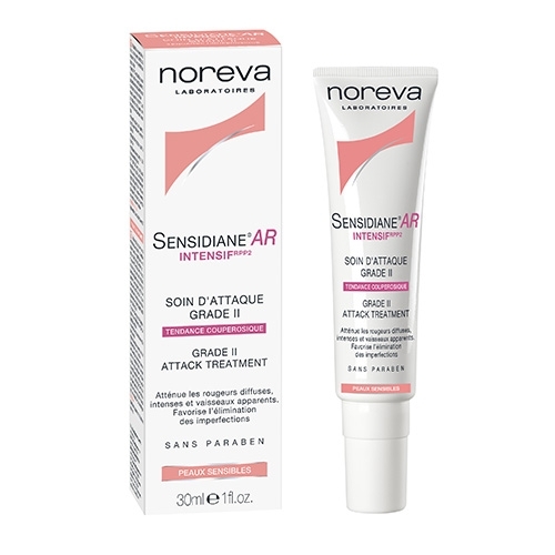 Développé spécifiquement pour les personnes ayant une peau à tendance couperosique, Sensidiane AR Intensif est un soin d’attaque qui : - agit sur la protection et le renfort des capillaires cutanés - diminue les rougeurs diffuses et les lésions inflammatoires - régule la flore cutanée - masque les rougeurs et unifie le teint instantanément - hydrate et apaise la peau durablement. Cette émulsion légère pénètre rapidement sans laisser de film gras sur la peau. Résultats garantis dès le 1er mois d’utilisation sur le renfort des capillaires, l’atténuation des rougeurs et des imperfections et l’unification du teint.
