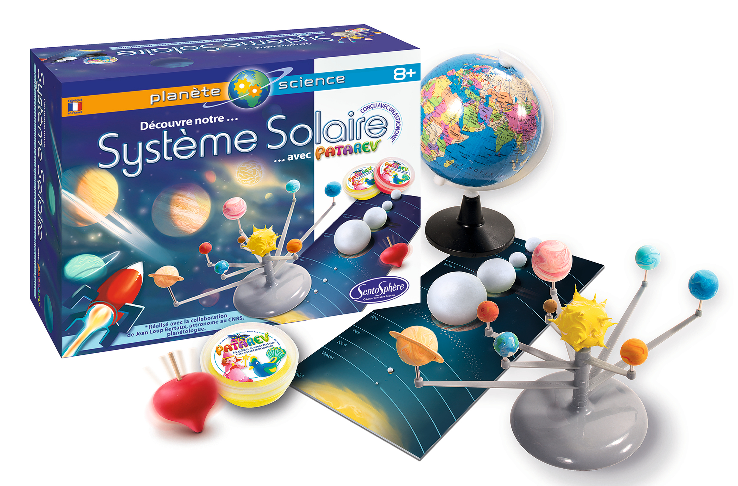 Ce coffret permet de découvrir notre Système Solaire avec 5 expériences fascinantes. Grâce un pot de Patarev, il sera possible de faire une mise à l'échelle des planètes, tout en découvrant leurs particularités, avant de construire un mini Système Solaire et d'observer le principe des éclipses. La notice montre également comment fabriquer une toupie qui, une fois lancée, aidera à comprendre et illustrer les mouvements de la Terre, à l'origine des jours et des saisons. Un condensé de découvertes aussi ludiques qu’éducatives, conçu en collaboration avec Jean-Loup Bertaux, astronome au CNRS et planétologue.