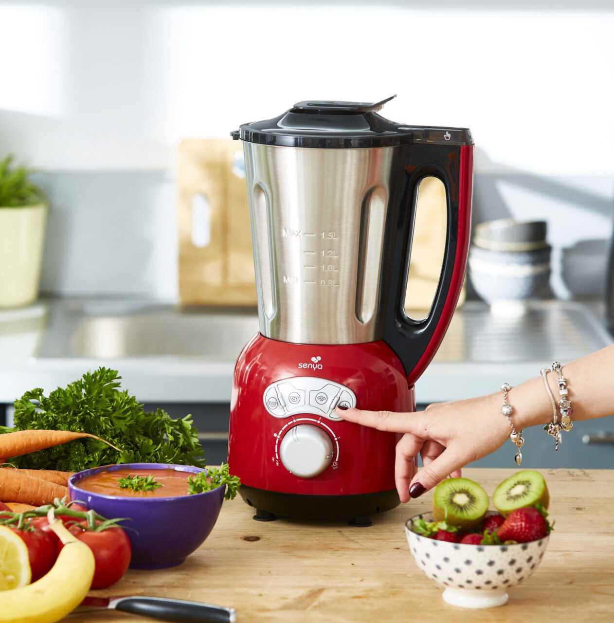 Le blender mixeur chauffant Cook & Ice de Senya, d'une capacité de 1,5 litre, est parfait pour réaliser des soupes (chaudes ou fraîches), potages et autres préparations en 30 minutes maximum.