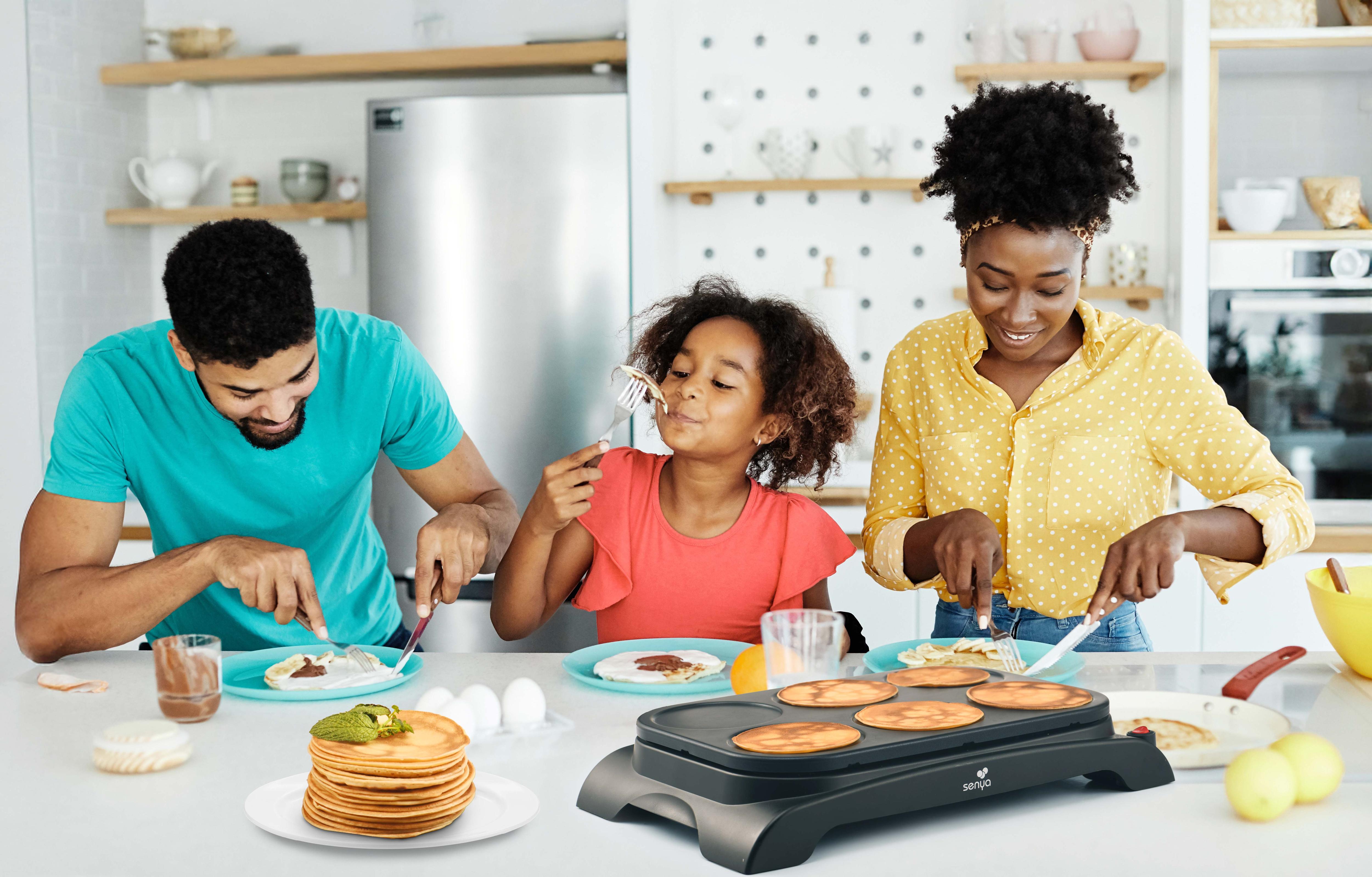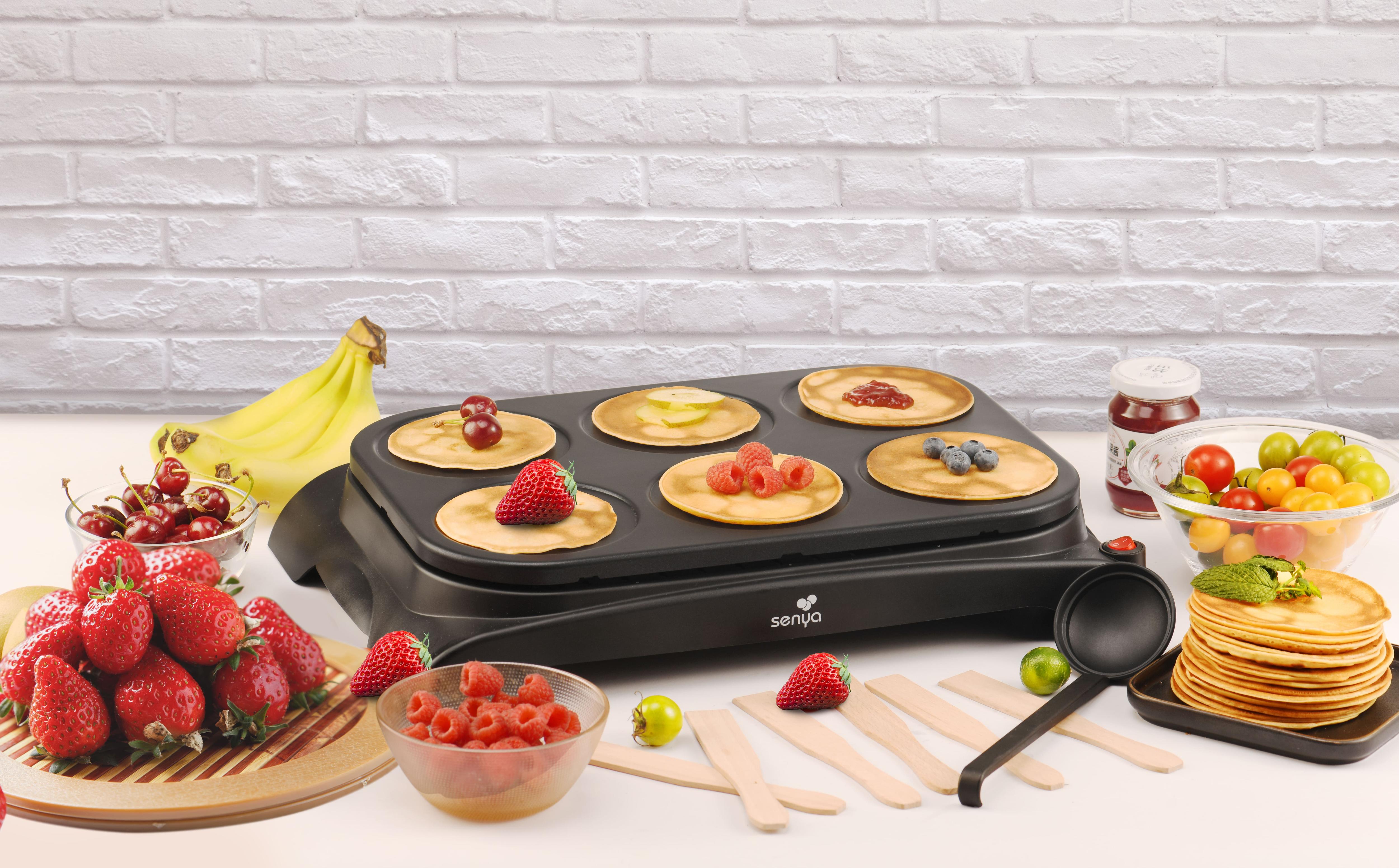 SENYA Crêpière électrique machine à crêpes 1000W, Plaque Antiadhésive diam.11,5 cm, crêpes, pancakes, 6 S