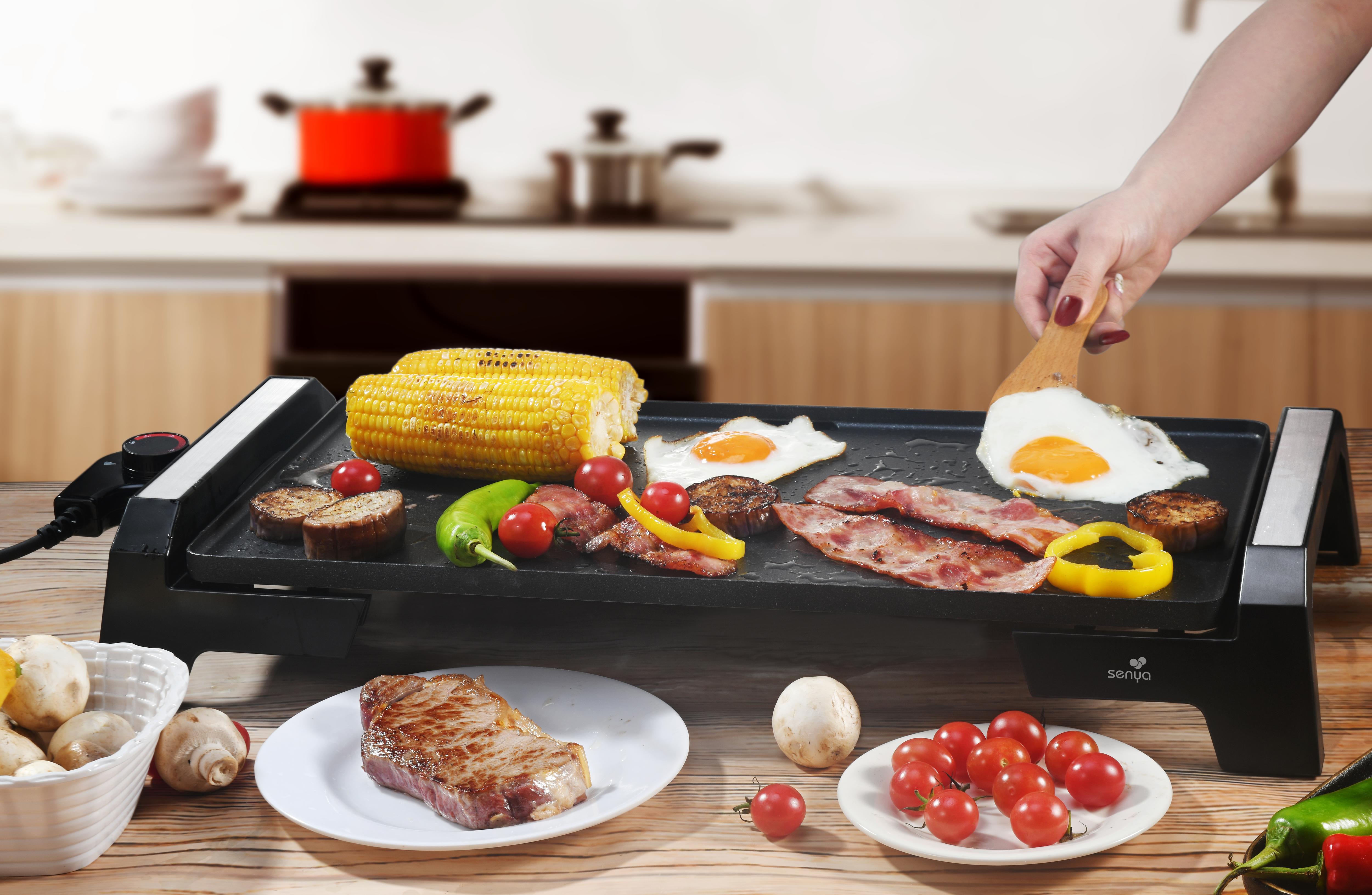 SENYA plancha électrique – 8 personnes – revêtement en pierre antiadhésif 2200 W – Plancha Time