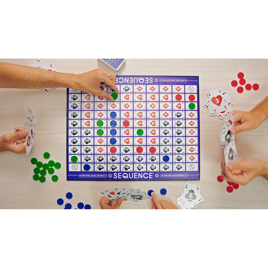 Jouez vos cartes avec stratégie pour aligner 5 jetons de votre couleur sur le plateau. Se joue individuellement ou en équipe.