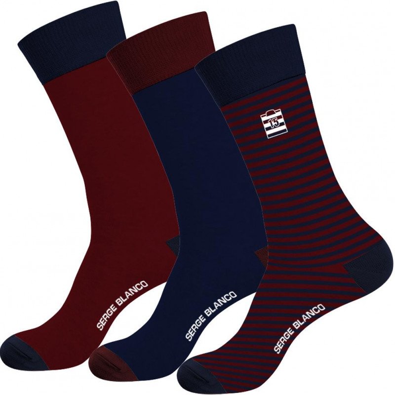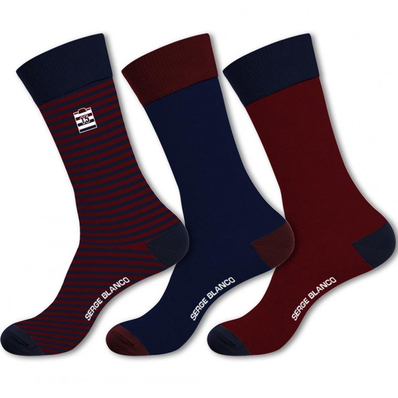 SERGE BLANCO Lot de 3 paires de Chaussettes Homme Coton CHVASS1 Bordeaux Marine