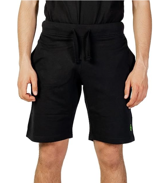 Short Sergio Tacchini en coton, taille élastique avec cordon de serrage, 2 poches latérales, 1 poche arrière et logo brodé vert fluo sur le bas.