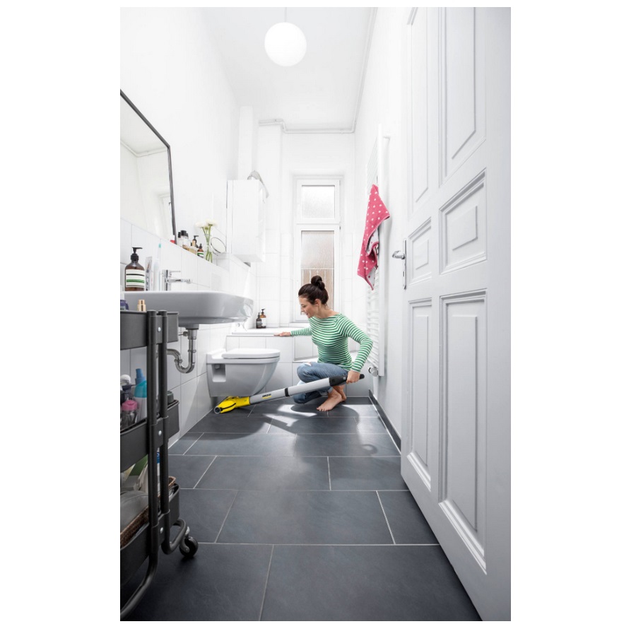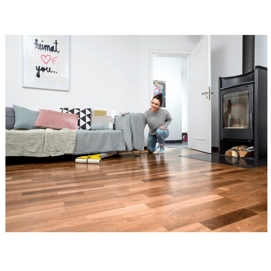 l'EWM 2 sans fil apporte une solution innovante pour le nettoyage de tous les sols durs, avec lui fini la serpillère ! Sa conception sans fil (autonomie 20 min) vous offre une liberté de mouvement maximale pour nettoyer sans contrainte. La rotation électrique des rouleaux (500 tours/min) entraîne l’appareil vers l’avant et permet de nettoyer sans effort. Plus besoin de frotter, l'EWM 2 sans fil le fait pour vous. Grâce à son système de récupération d'eau sale, l'EWM 2 sans fil laisse un sol sec en seulement 2 minutes. Convient à tous les sols durs (carrelage, linoléum et même le parquet). Extrêmement maniable, ce nettoyeur de sols est composé d’une tête flexible permettant d’atteindre les moindres recoins de la maison. Il permet un nettoyage efficace sous les meubles et au plus près des plinthes. Le réservoir d’eau propre humidifie automatiquement les rouleaux, vous nettoierez ainsi toujours avec de l'eau propre. Idéal pour un nettoyage hygiénique de votre intérieur. Il existe un détergent Kärcher adapté à chaque type de sol : utiliser le détergent approprié garantit une efficacité de nettoyage optimale.