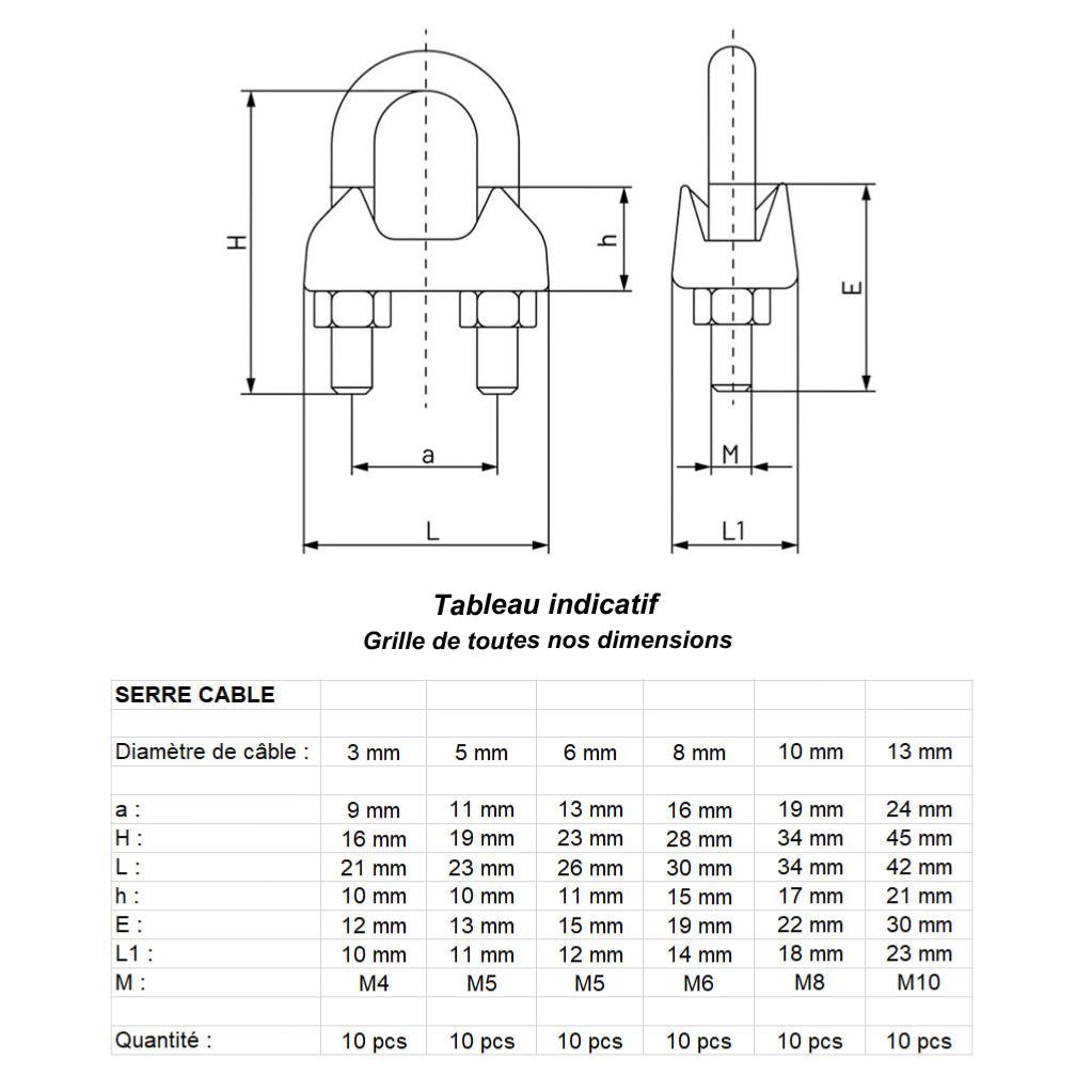 | Libellé | SERRE CABLE A ETRIER EN ACIER ZINGUE - dtail : 6 MM |