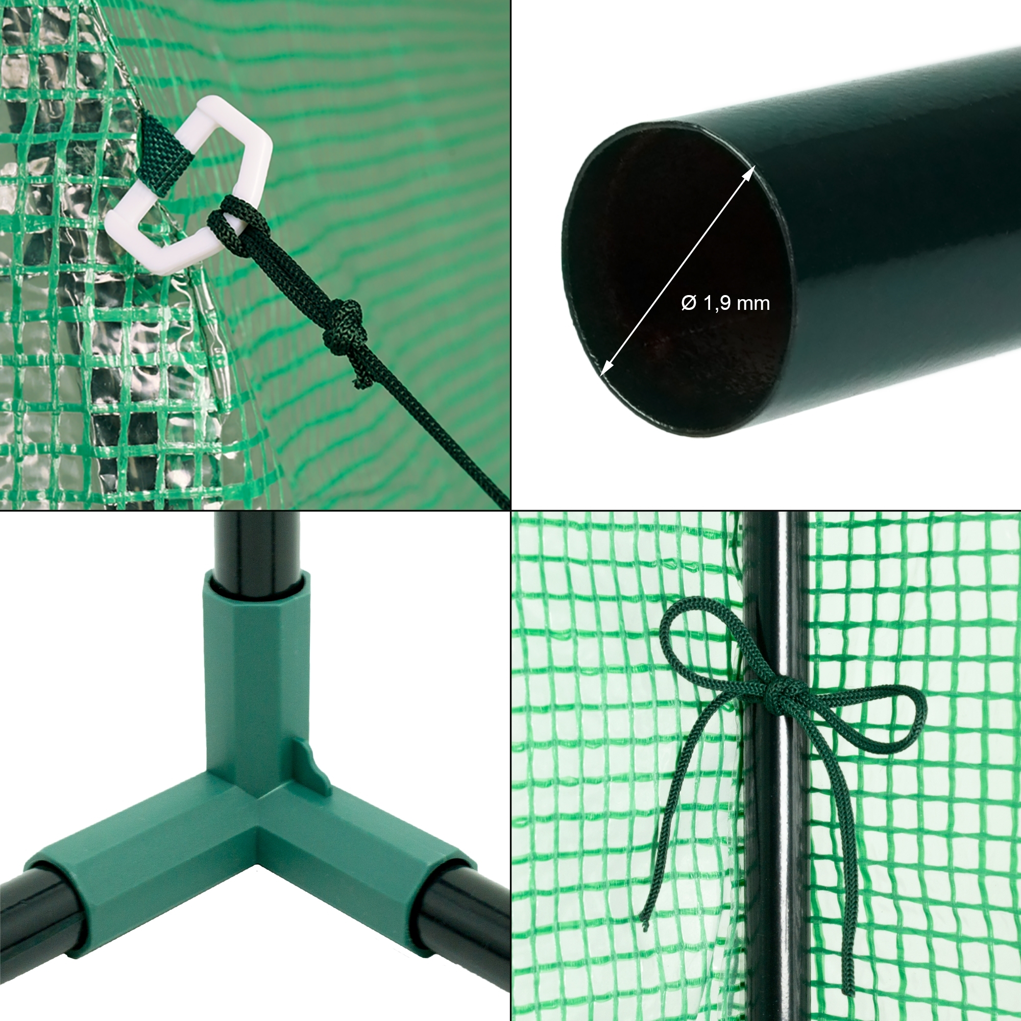 La couverture translucide retient l'humidité et la chaleur, créant un climat méditerranéen idéal pour la croissance de vos plantes. La porte dotée de fermetures éclair pratiques peut être ouverte et fermée rapidement selon les besoins, ce qui permet une circulation optimale de l'air.