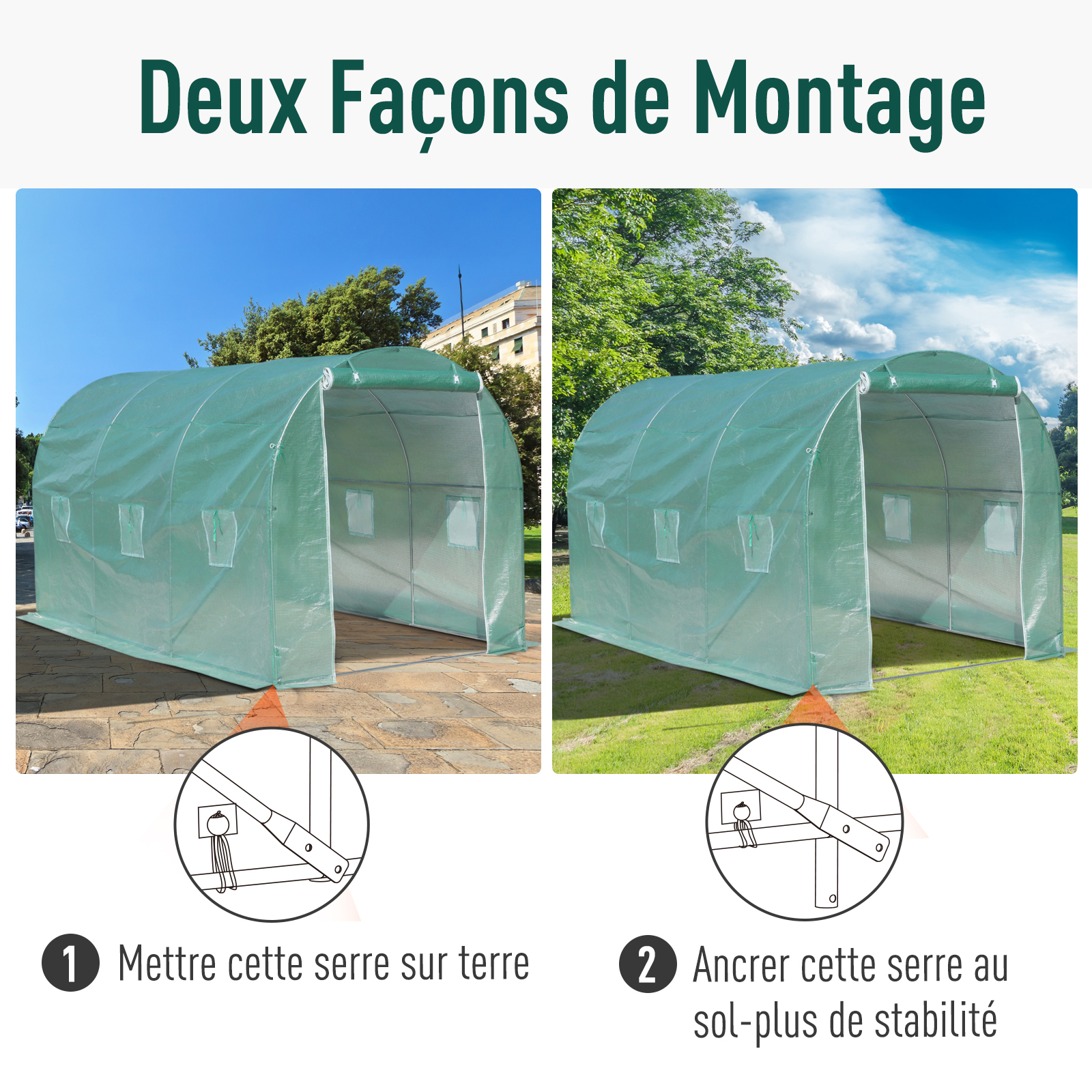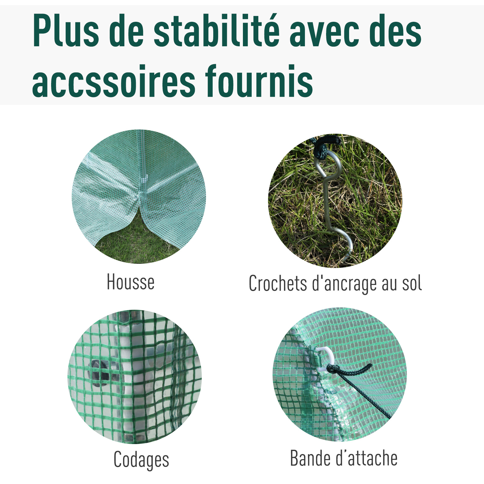Serre de jardin tunnel surface sol 8 m² 4L x 2l x 2,10H m châssis tubulaire renforcé porte zippée 6 fenêt