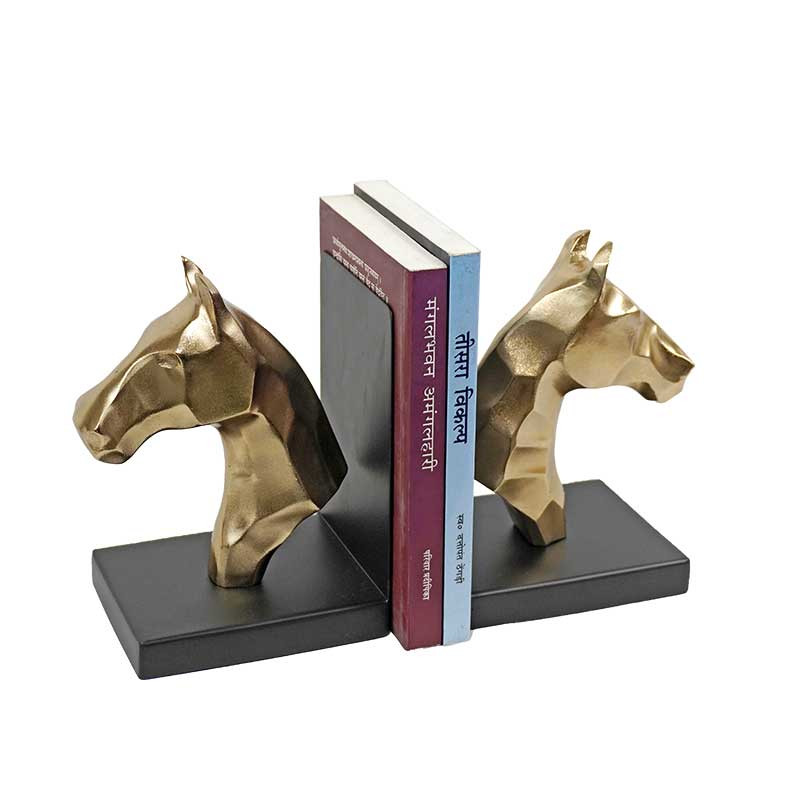 Ajoutez une touche d'élégance équestre à votre bibliothèque avec notre serre-livres cheval en aluminium doré !