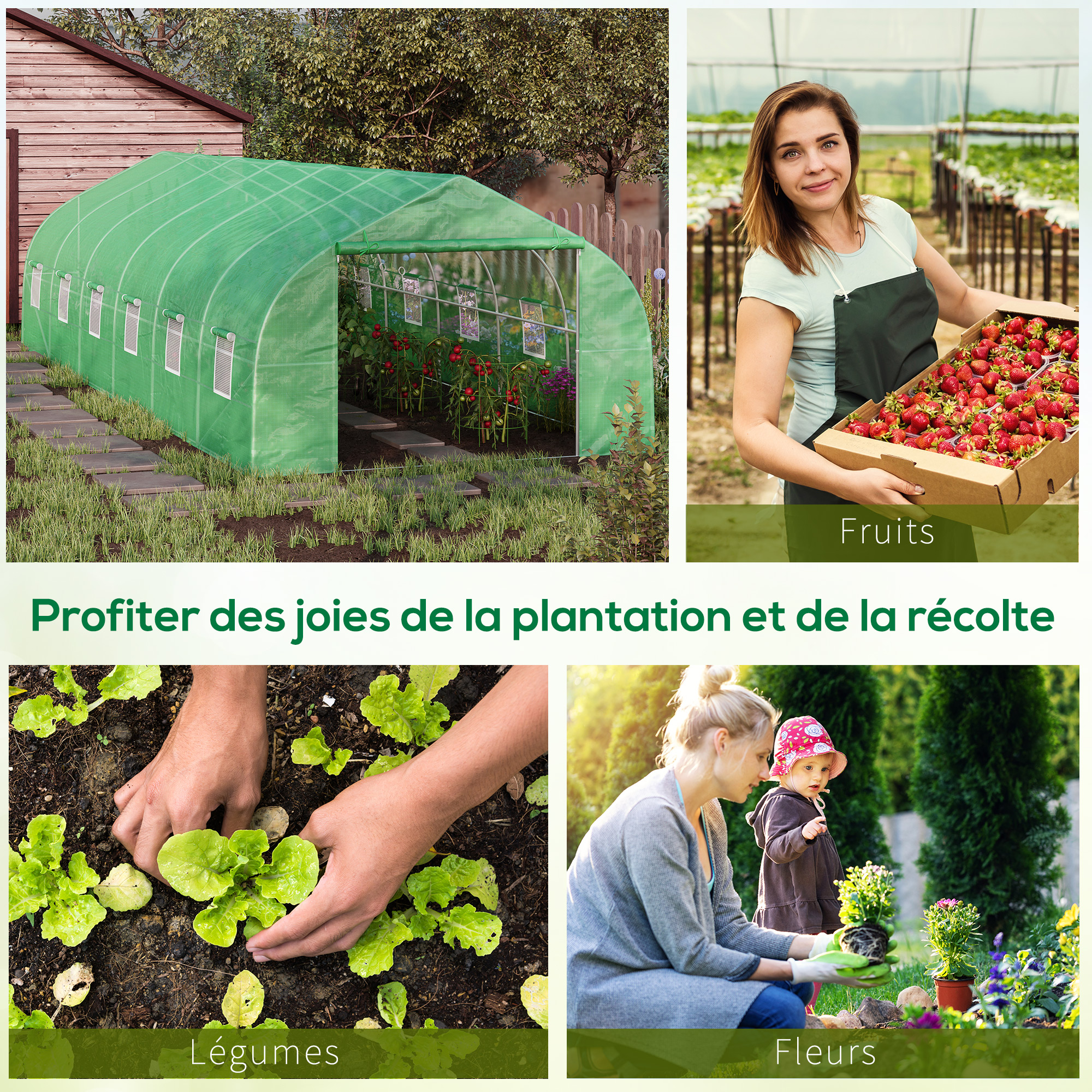Serre tunnel grande taille 24 m² châssis tubulaire acier galvanisé renforcé 2,4 cm 12 fenêtres 1 porte ve