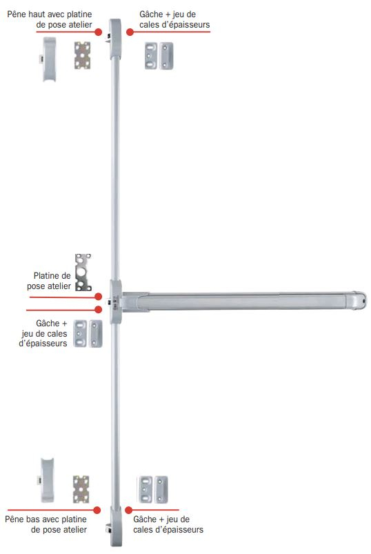 Libellé Serrure anti panique CF IDEA 3 points pênes latéraux finition argent - ISEO - 942608477TA