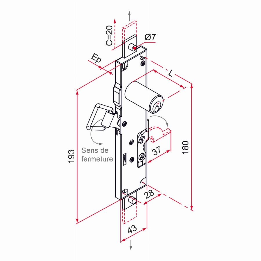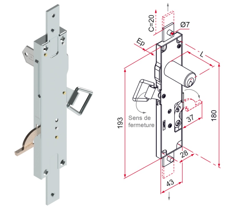 Cette serrure peut être installée en version crémone ou serrure sur des volets battants, offrant ainsi une flexibilité selon le type de fermeture souhaité. Cette caractéristique permet d'équiper des systèmes variés tout en conservant un verrouillage fiable et pratique.