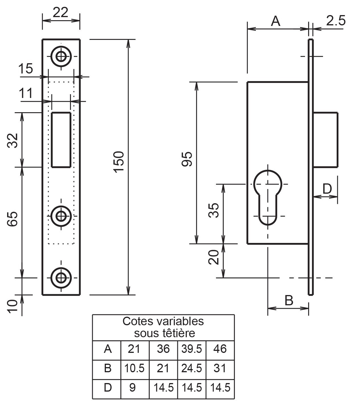 Serrure monopoint à larder profil étroit pêne dormant seul petit coffre Série 14 largeur 36mm - METALUX -