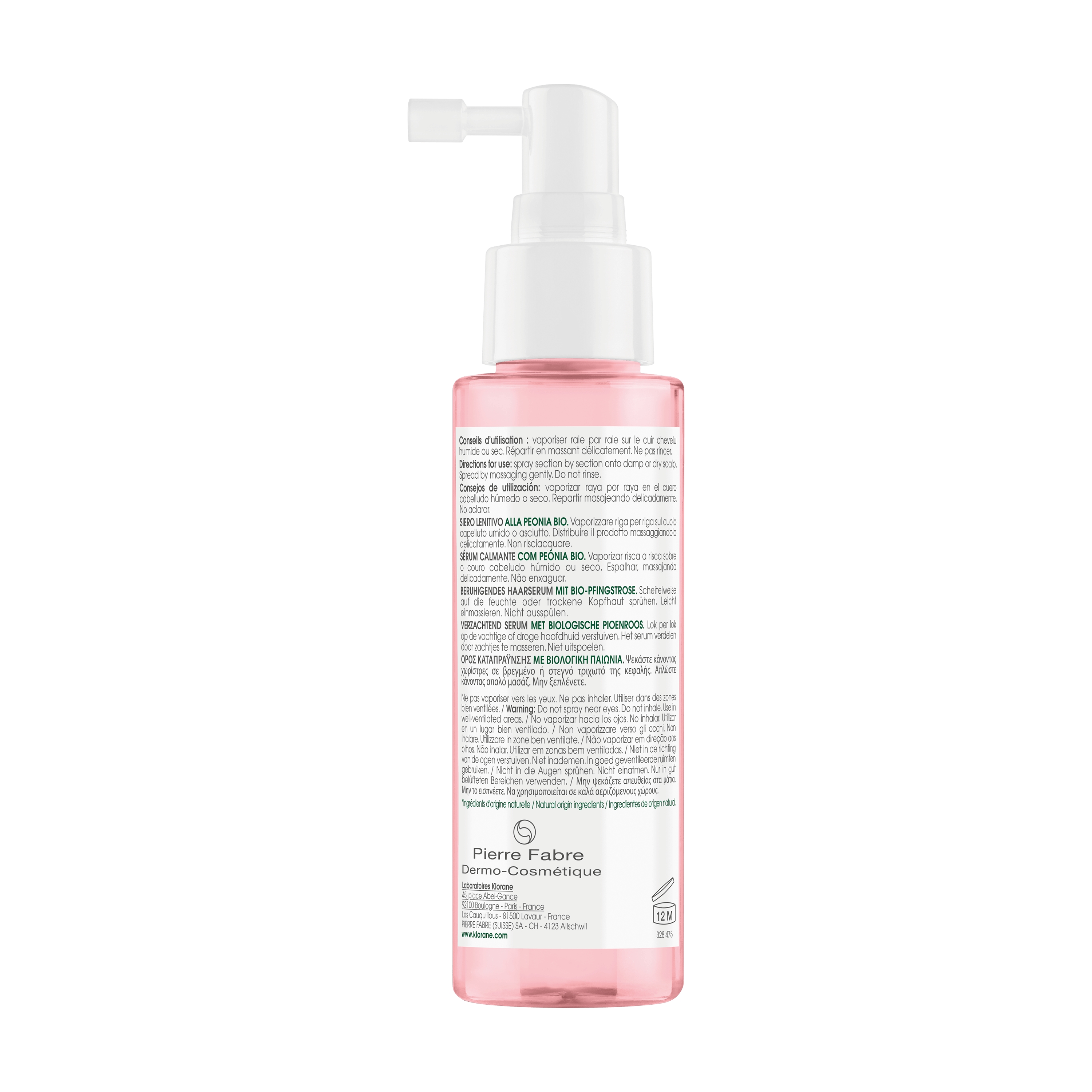 Le Sérum apaisant à la Pivoine BIO procure une sensation d’apaisement instantané et durable au cuir chevelu sensible et irrité. Non gras, non collant et sans rinçage, ce spray pratique boosté à l’actif naturel de Pivoine réduit immédiatement les crises d’irritation* et offre une sensation de confort 24 h***. Le cuir chevelu est durablement soulagé, hydraté et protégé, pour des cheveux doux et brillants. S’utilise de préférence en traitement de 7 jours. *Sensations d’irritations réduites immédiatement : 97% de satisfaction - Score clinique à 15 jours après 7 jours d'utilisation sur 32 sujets. ***Sensation de confort 24h - Effet perçu.